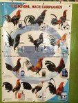 L’image présentant des coqs n’était pas le menu du restaurant ou nous avons fait la pose pour déjeuner (de la soupe du poulet et de légumes pour 2€) mais la présentation des champions de combats de coqs très populaires dans la région.