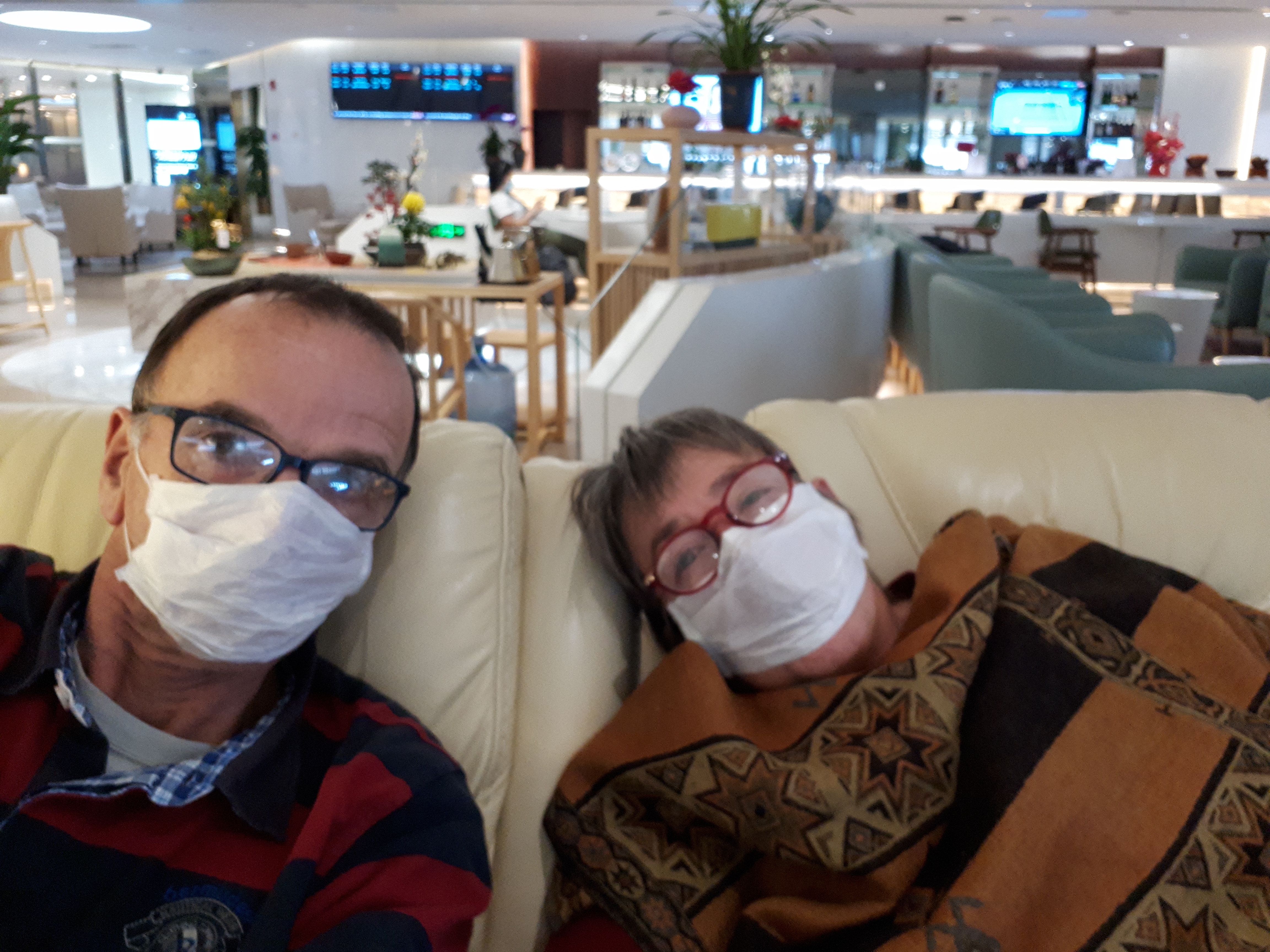 Sur la route de retour vers la Nouvelle Zélande nous faisions escale à Canton (Guangzhou). On a 8 heures d’attente qu’on aurait aimer utiliser pour faire un saut en ville. Mais on a préféré rester en transit dans l’aeroport rapport à nos visa Neo Zelandais (ou plutôt leur absence et oui désormais il faut des visas) et l’épidémie de coronavirus qui prend de l’ampleur: ici pratiquement tout le monde porte un masque. On va profiter une dernière fois du salon et faire une sieste.