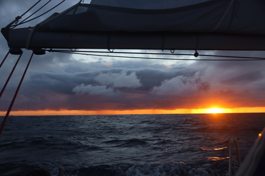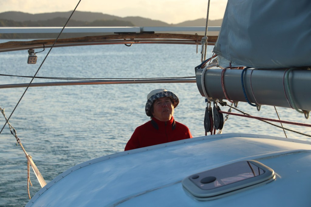 La première partie de la traversée depuis Whangaroa c’était très bien passé comme vous avez pu le lire. Mais cette deuxième partie est à classer dans la catégorie des navigations de rêve. Nous avons passé une grande partie de la journée de dimanche au moteur dans des vent d’ENE très faibles (5 à 6 nds) mais étant à 100° du vent réel nous avons pu garder les voiles et la mer étant plate bien avancer en ne dépassant pas les 1200 tours au moteur. Nous avons déviés un peu de notre route vers l’ouest pour contourner une zone de calme et aller chercher le vent qui devrait se lever en fin de journée. A 18 heures le vent et bien là pas très régulier au début mais suffisant pour couper le moteur. Vers 21:00 il est tout à fait établi à 12 nds vent de travers ce qui nous permet de glisser sans effort sur cette mer toujours plate à 7-8 nœuds. La nuit est parfaitement claire et nos quarts se succèdent sous la voûte étoilée… en fait on la voie juste de temps en temps, quand on sort le bout du nez de notre véranda douillette pour peaufiner le réglage de l’écoute de foc et faire avancer le bateau au maximum, parce que cette nuit sèche et claire est plutôt fraîche.