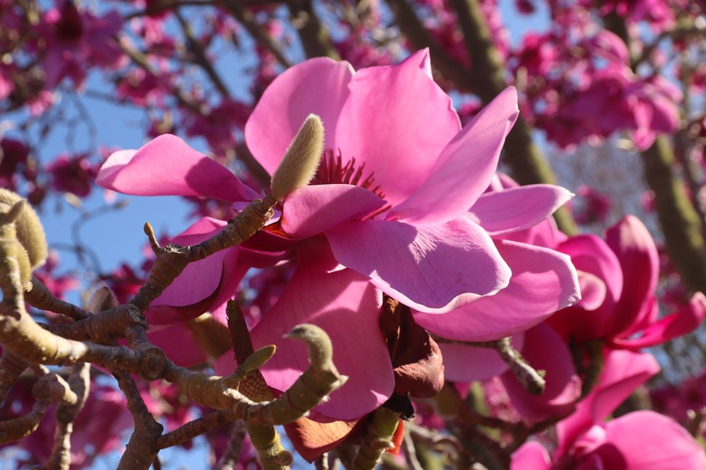 Depuis une semaine que nous sommes à Nelson nous parcourons la ville en trottinette et elle s’y prête bien .La marina se trouve à 10 minutes du centre ville et un chemin d’accès pour les piétons et les vélos a été aménagé avec un magnifique parc et un chemin qui longe la rivière bordée de magnolias croulants sous leurs fleurs roses: c’est bientôt le printemps. Le chemin longe la rivière Maitai jusqu’au parc de Branford et continue même plus loin dans la vallée.