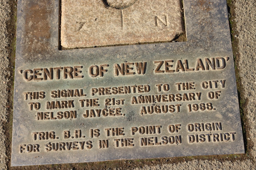 De là, trottinettes sur l’épaule nous montons jusqu’au « centre de la Nouvelle Zélande » (c’est un petit monument très populaire au sommet d’une des collines qui entoure la ville). De là nous sommes gratifiés d’une fantastique vue plongeante et panoramique sur la ville de Nelson et toute la baie de Tasman. Nous longeons le coteaux sur quelque km et redescendons à travers la forêt d’eucalyptus pour rejoindre la route côtière qui vient de Picton et Blenheim.