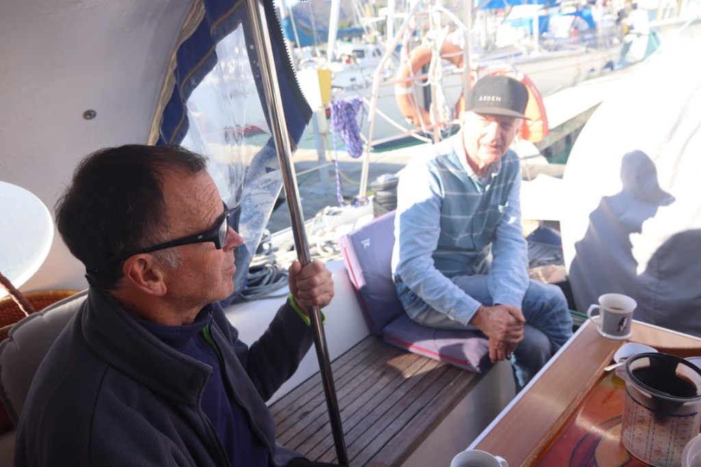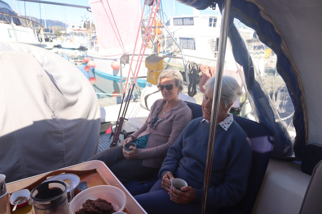 Mardi matin, Marion, Dave et leur fille Karen (une famille de Nelson avec qui ma soeur Sophie s’était liée d’amitié lors de son passage ici en 2004) viennent prendre le café à bord de Rêve à Deux et nous passons la matinée à raconter notre voyage .