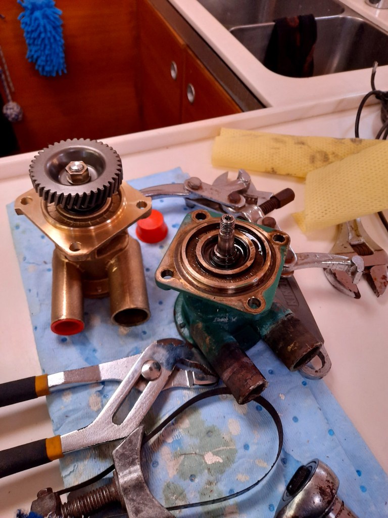 Mercredi, la pompe à eau de mer est arrivée et on a pu la remplacer sans difficulté.