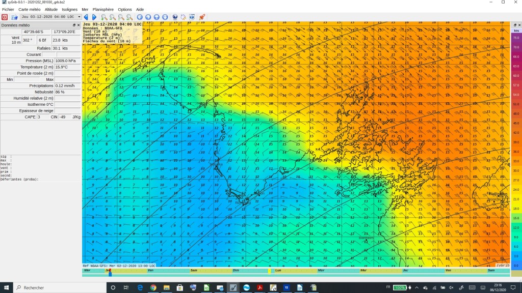 Les bulletins côtiers de NZ MetService (merci Michel) donnent un très bonne vision de ce qui se passe à l’extérieur des Sounds et permettent de se faire un idée de ce qui va nous tomber dessus à l’intérieur à savoir que si il fait mauvais dehors, dedans aussi on va prendre cher.