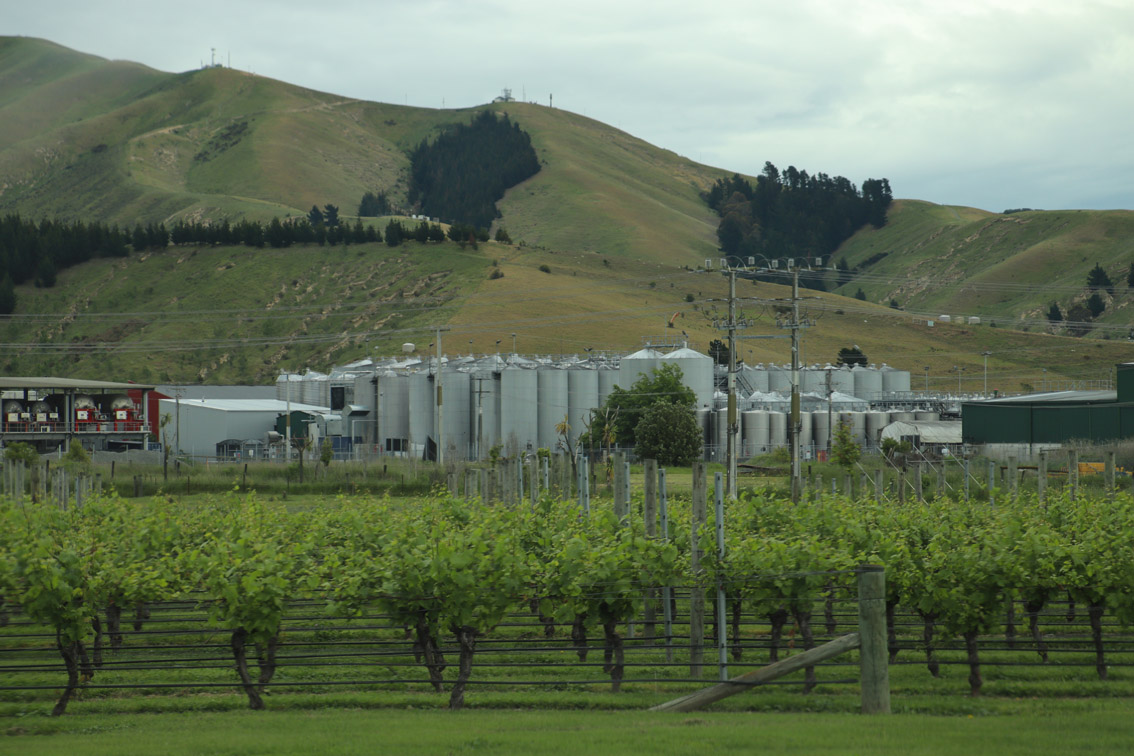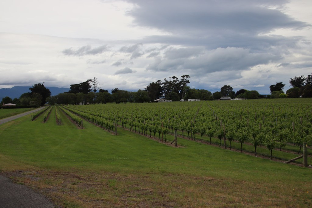 La majeure partie du vignoble est planté dans la plaine de la rivière Wairau qui descend des montagnes pour rejoindre l’océan Pacifique près de Blenheim et dont les terres alluviales caillouteuses se prêteraient, parait-il, particulièrement bien au Sauvignon blanc tandis que le Pinot Noir s’accommoderait mieux des terres plus anciennes et plus argileuses ondulant entre la vallée proprement dite et les collines Wither qui la limite au sud (zone appelée Southern Valleys). Bien que la large vallée de la Wairau soit bordée au sud, de collines ( les Wither Hills) et au nord, de montagnes (le Richmond Range), nous n’avons vu aucune plantation en côteaux. Nous n’avons pas encore visité la partie la plus au sud du vignoble: la vallée de l’Awatere ou l’exploitation a commencé plus récemment, qui serait plus vallonnée et dont les terres plus arides donnerait un caractère particulier au vin.