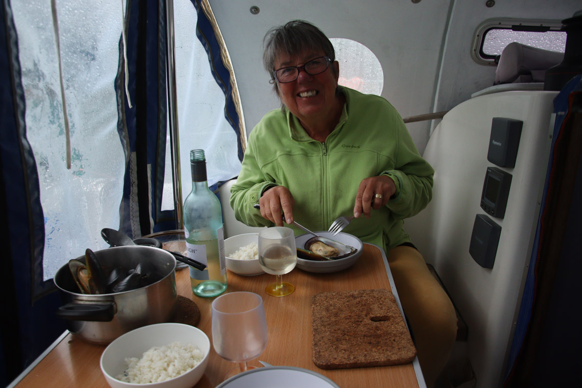 Il parait que le poisson abonde dans les Sounds mais nous ne sommes pas très doués pour la pêche à la ligne. Par contre côté pêche à pied on se défend bien est on c’est régalé de moules et de coques en abondance. Ce qui nous a permis de tenir quelques jours de plus sans entamer notre stock de conserves.