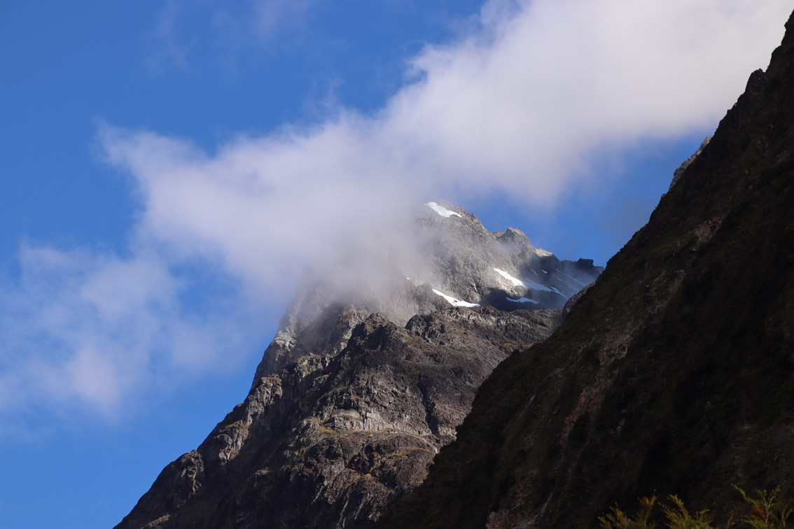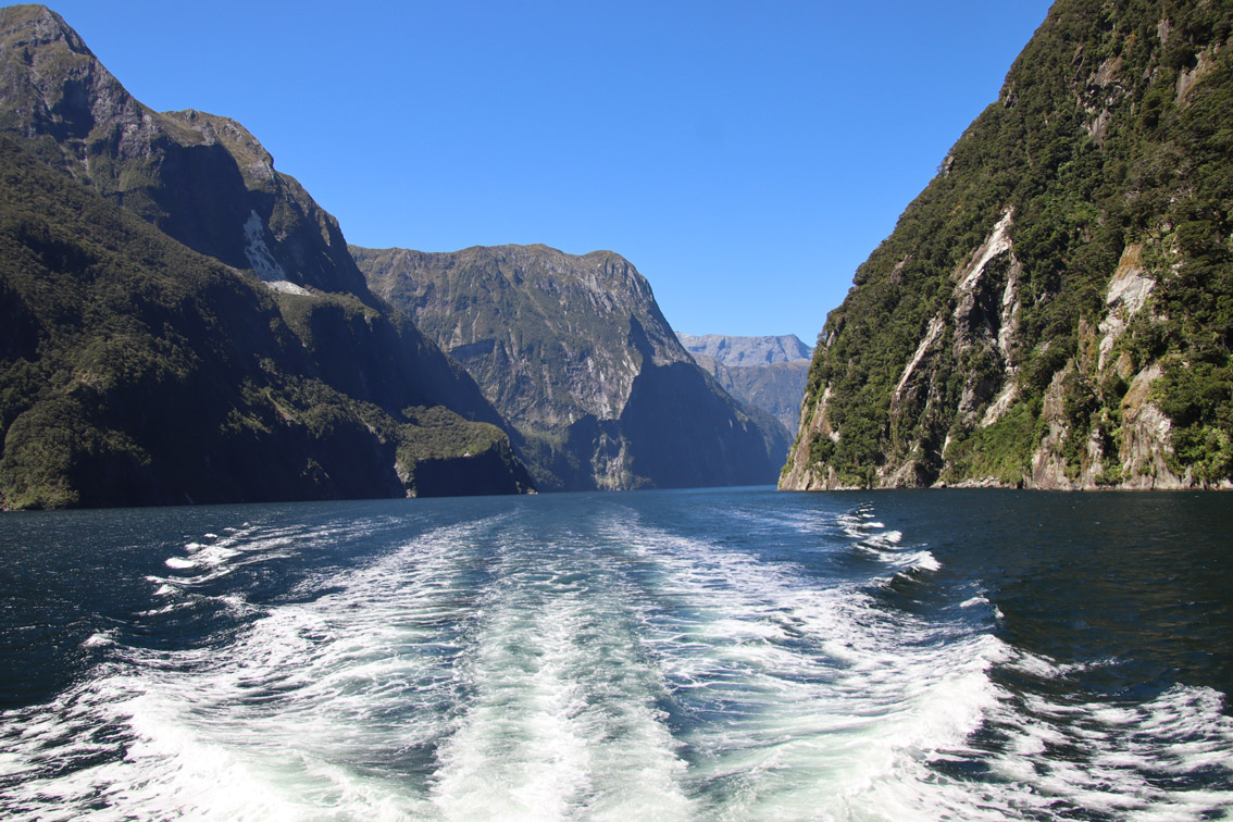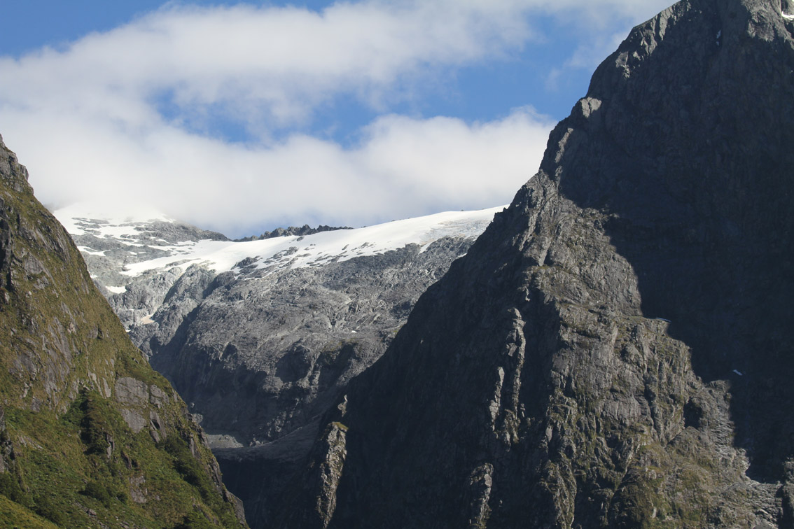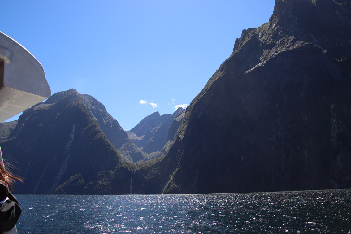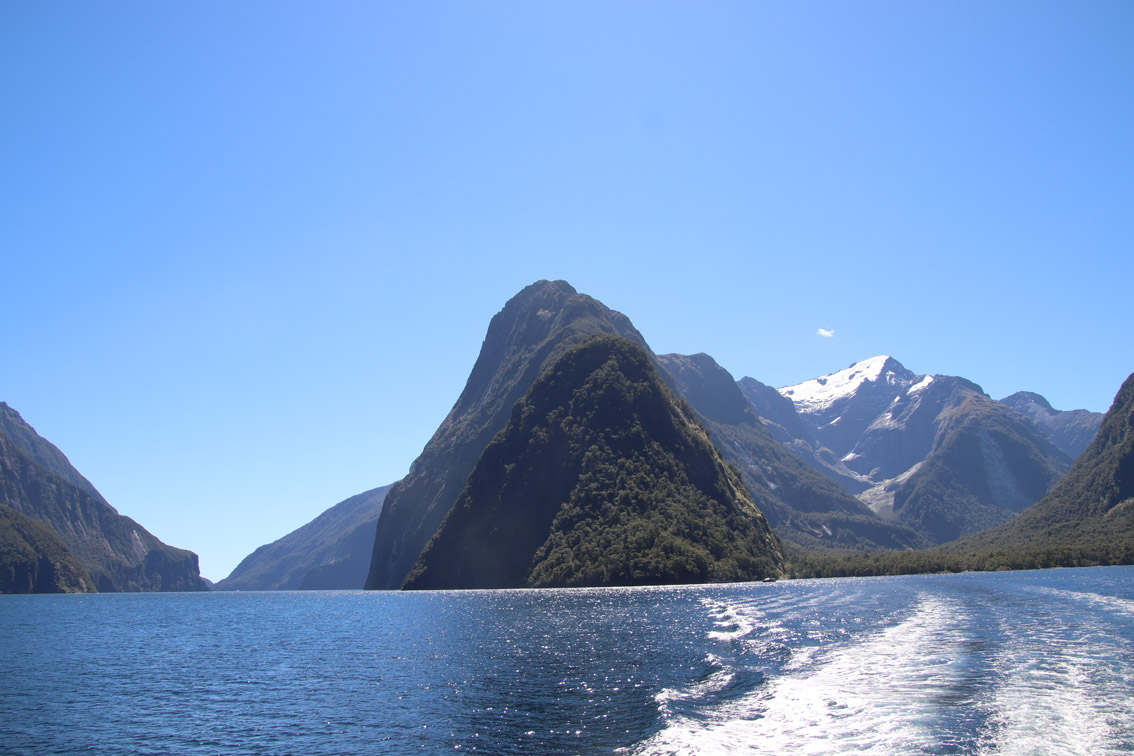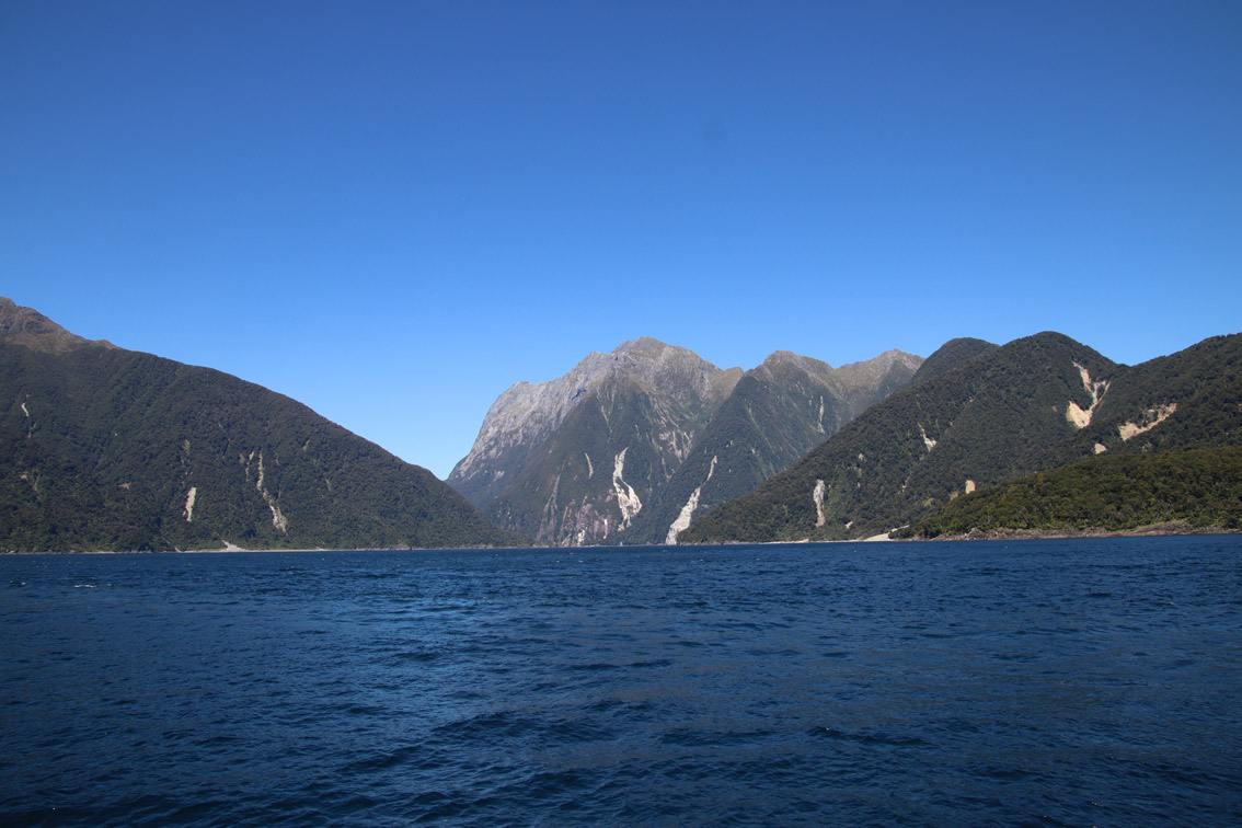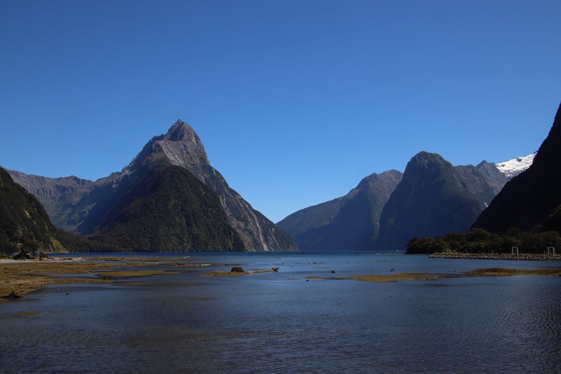 Milford Sound: le nom donné par Cook et les premiers explorateurs est resté mais ce n’est pas du tout un sound (ria ou aber en français) = vallée creusée par une rivière et inondée par la mer, mais bien un fjord = vallée creusée par un glacier et remplie par la mer.