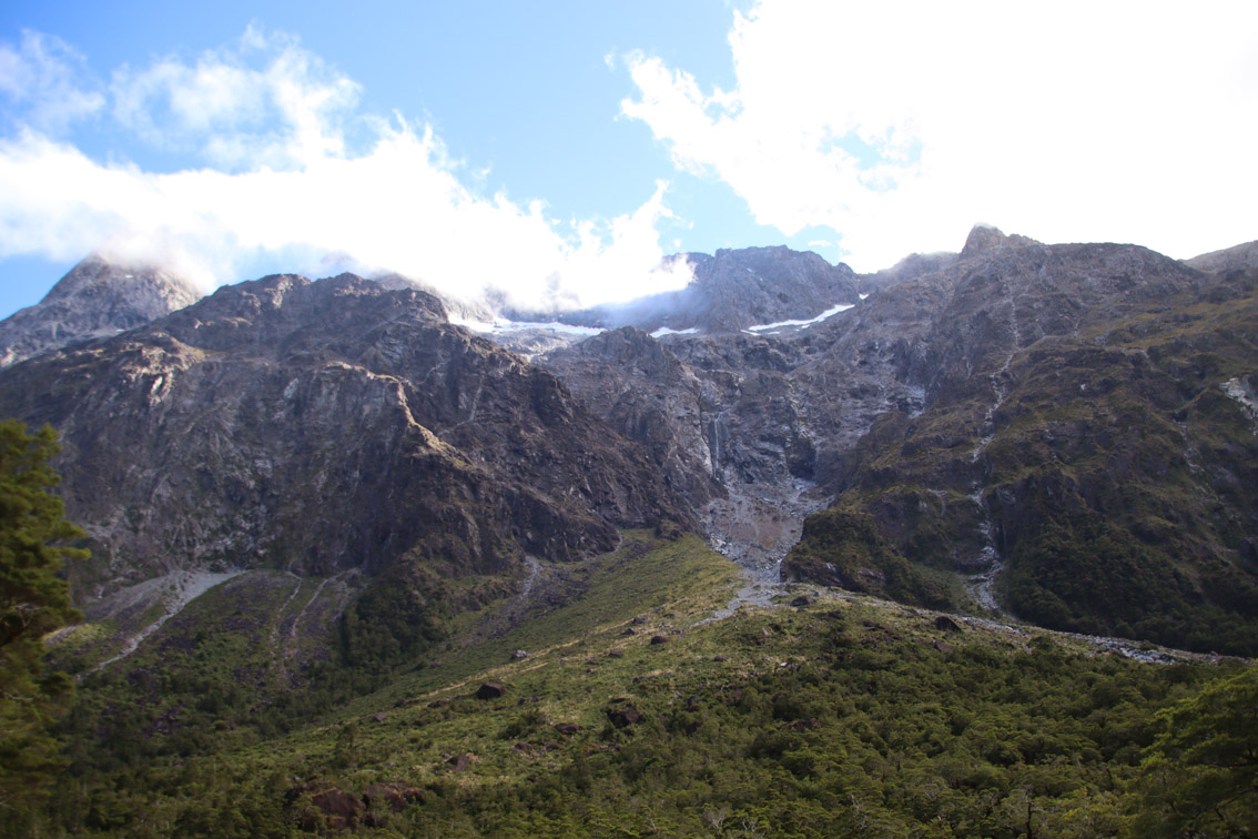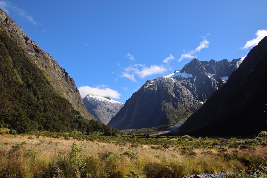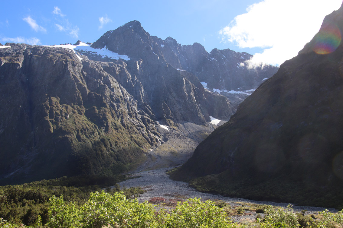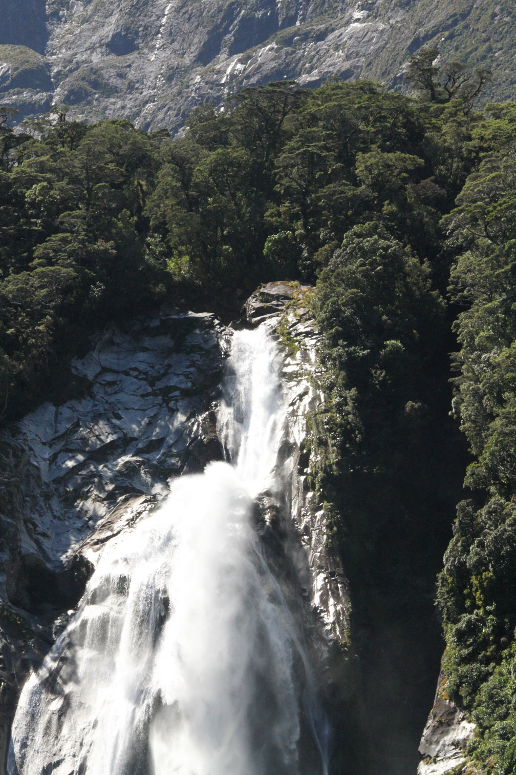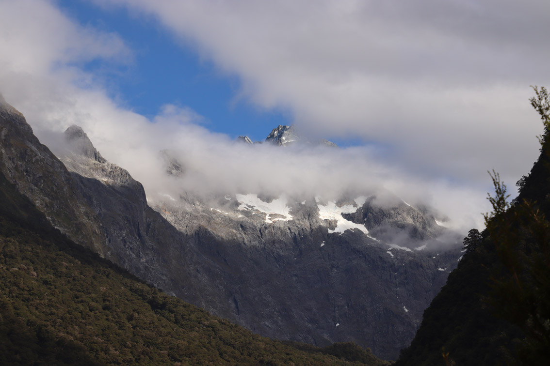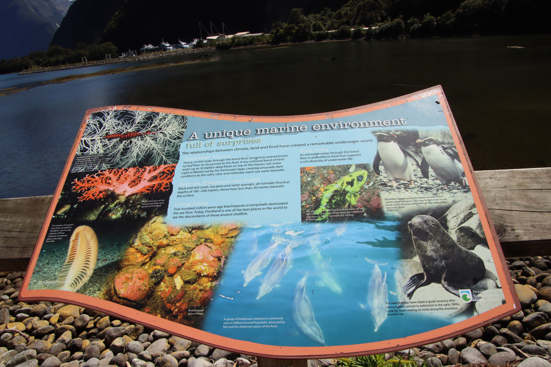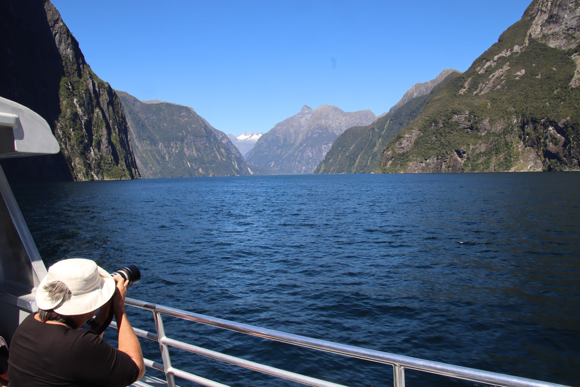 Milford Sound: le nom donné par Cook et les premiers explorateurs est resté mais ce n’est pas du tout un sound (ria ou aber en français) = vallée creusée par une rivière et inondée par la mer, mais bien un fjord = vallée creusée par un glacier et remplie par la mer.
