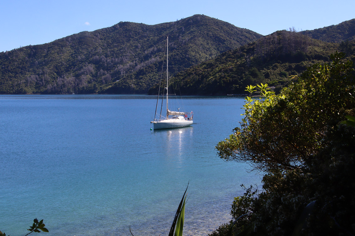 Lundi premier Février. Le temps est encore magnifique. Comme tout les matins on télécharge les gribs ainsi que les cartes et bulletins envoyé par Michel pour les analyser. Si un trajet vers le nord risquerait d’être inconfortable en raison de la mer très forte générée par le cyclone Lucas dans sa descente vers le Sud Est, les conditions semblent idéales pour aller sur Lyttelton au sud. Un routage rapide pour vérifier et Banco ! On ne va pas rater l’occasion, le détroit de Cook est tellement capricieux et puis de toute façon Lyttelton est « port of entry » on peut donc, le cas échéant, y effectuer les formalités de départ. Le temps de dégonfler l’annexe et de le larguer les amarres et c’est parti. Au revoir Marlbourough on aura passé 3 mois fantastiques dans les Sounds,c’est vraiment une région superbe !