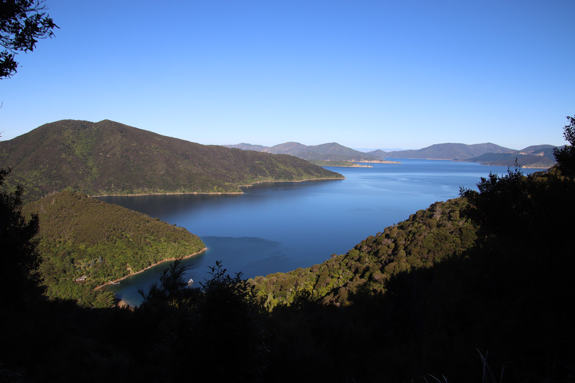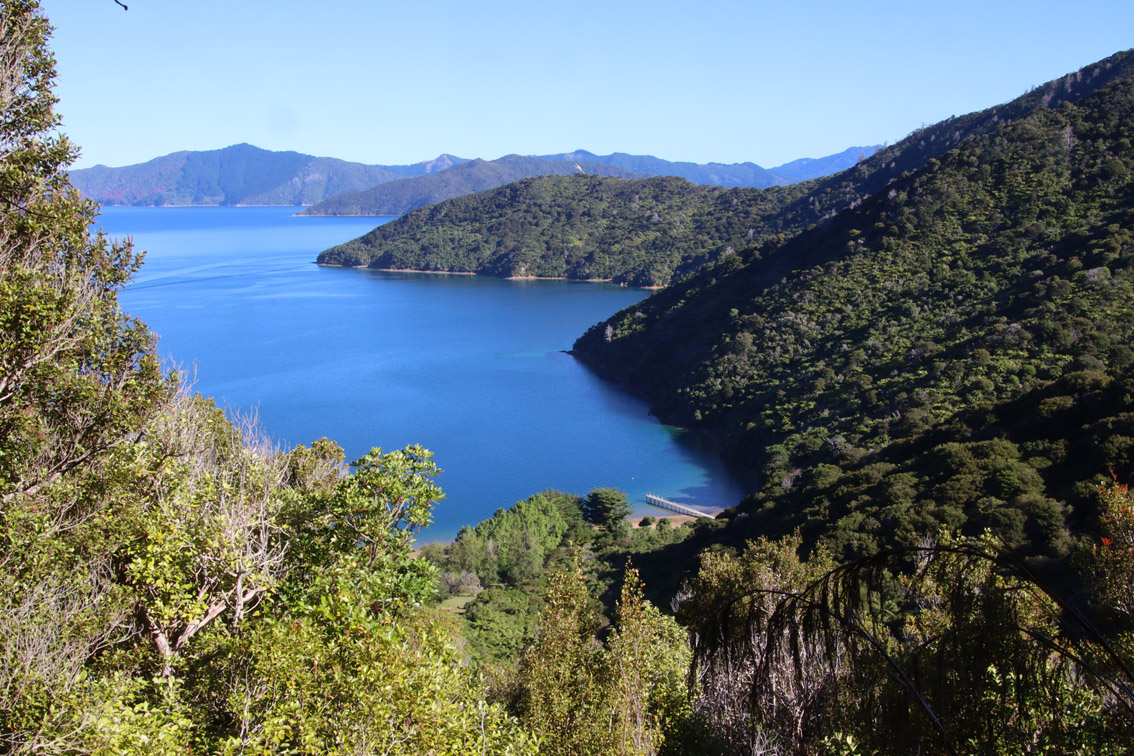 Dimanche 31 janvier, le temps et superbe avec juste ce qu’il faut de vent dans le Sound, on tire des bords pour se changer les idées, on fait le tour de Blumine Island par le sud avant de bifurquer vers School House bay. Baignade et grimpette jusqu’au col séparant la Resolution Bay de Endeavour Inlet avec une vue imprenable sur tout le Sound. Le soir à table on échaffaude encore des scénarios de départ mais on tourne toujours en rond.