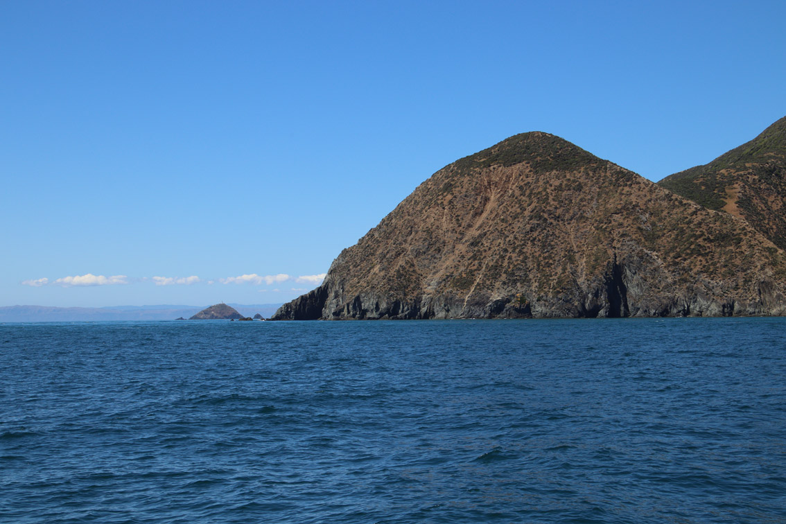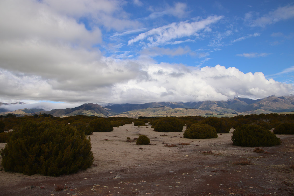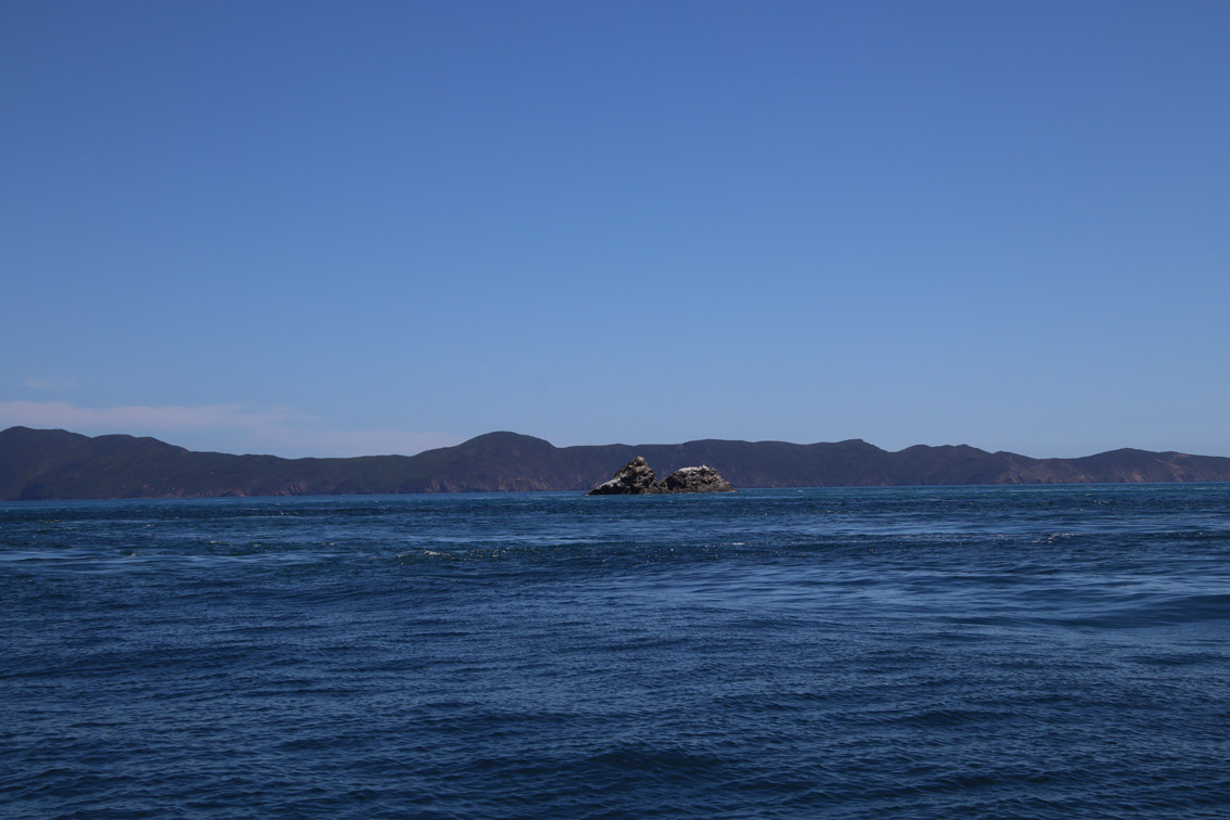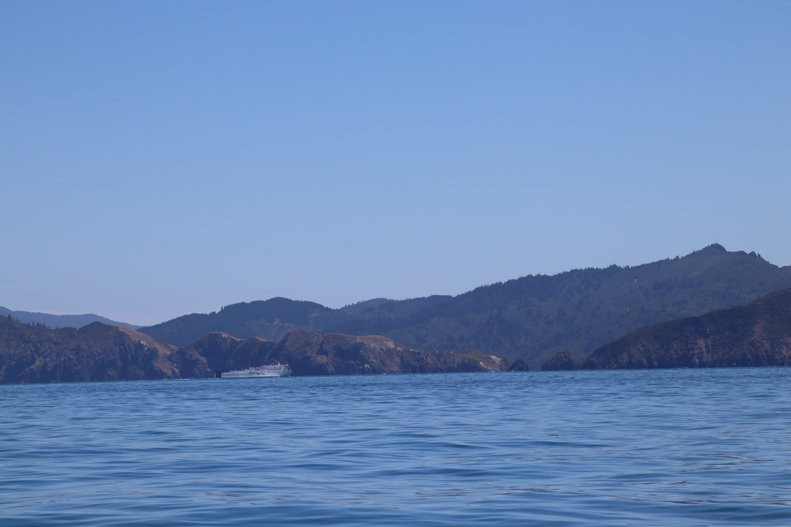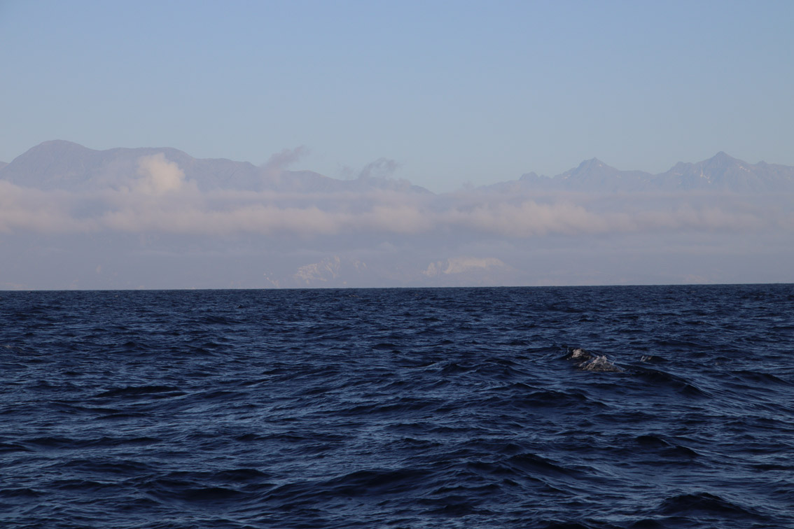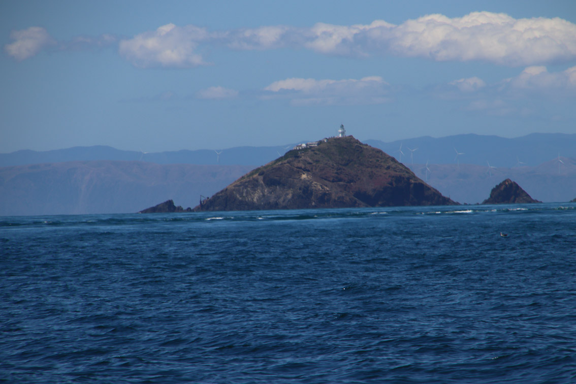 La sortie et le passage du détroit de Cook, réputé comme l’un des plus difficiles du monde, se passe dans des conditions tout à fait idéales. On est juste à l’heure pour profiter du courant, la mer est plate, et il y a très peu de vent. Petite anecdote: par le travers de la sortie du Torry Chanel, nous croisons des ferries et entendons leurs conversations en VHF avec le « Harbour Master » de Picton: alors qu’ici au milieu du détroit c’est calme plat, là-bas sur le quai au fond du Sound ils ont 25 nœuds établis avec des rafales à plus de 30… comme quoi la météo du coin c’est vraiment spécial. Ce calme nous oblige d’ailleurs à recourir au moteur pour essayer d’arriver au cap Cambell avant la prochaine renverse. On y parvient presque mais le vent se lève à 15 nds de face et c’est en tirant quelques bords contre le vent et le courant que nous le franchissons. Passé le cap la nuit tombe et le vent adonne si bien que nous pouvons choquer les voiles. Au matin nous sommes plein vent arrière au large de Kaikoura. Les falaises blanches ressemblent à cette distance à des sommets enneigés jusqu’au moment ou on aperçoit les vrais sommets (notamment le Mont Tapuae-o-Uenuku) par dessus les nuages.