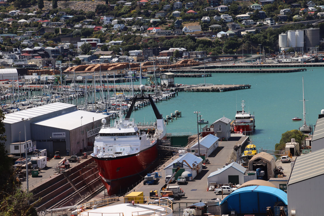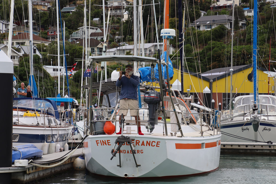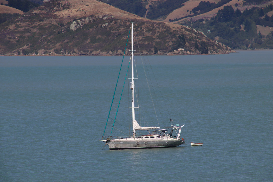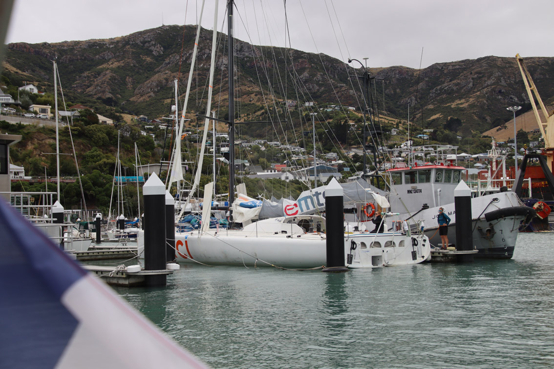 A 21:30 nous rentrons dans la baie de Lyttelton. Les rafales sont encore fortes dans le port intérieur et comme on y voit pas grand-chose on hésite à se faufiler pour aller à la place que nous a attribuée Matt le responsable de la Marina. On s’amarre donc provisoirement au bout du ponton juste à côté d’un grand bateau blanc avec un gigantesque mat carbone appelé MERCI…Nous sommes sur la place d’un pêcheur et il est possible qu’il pointe son étrave avant la de la fin nuit aussi nous nous couchons tout habillés et, vers 5:30 mercredi matin, comme le vent c’est totalement calmé, on rejoint la place qui nous est assignée avant que le pêcheur ne rentre et nous déloge.