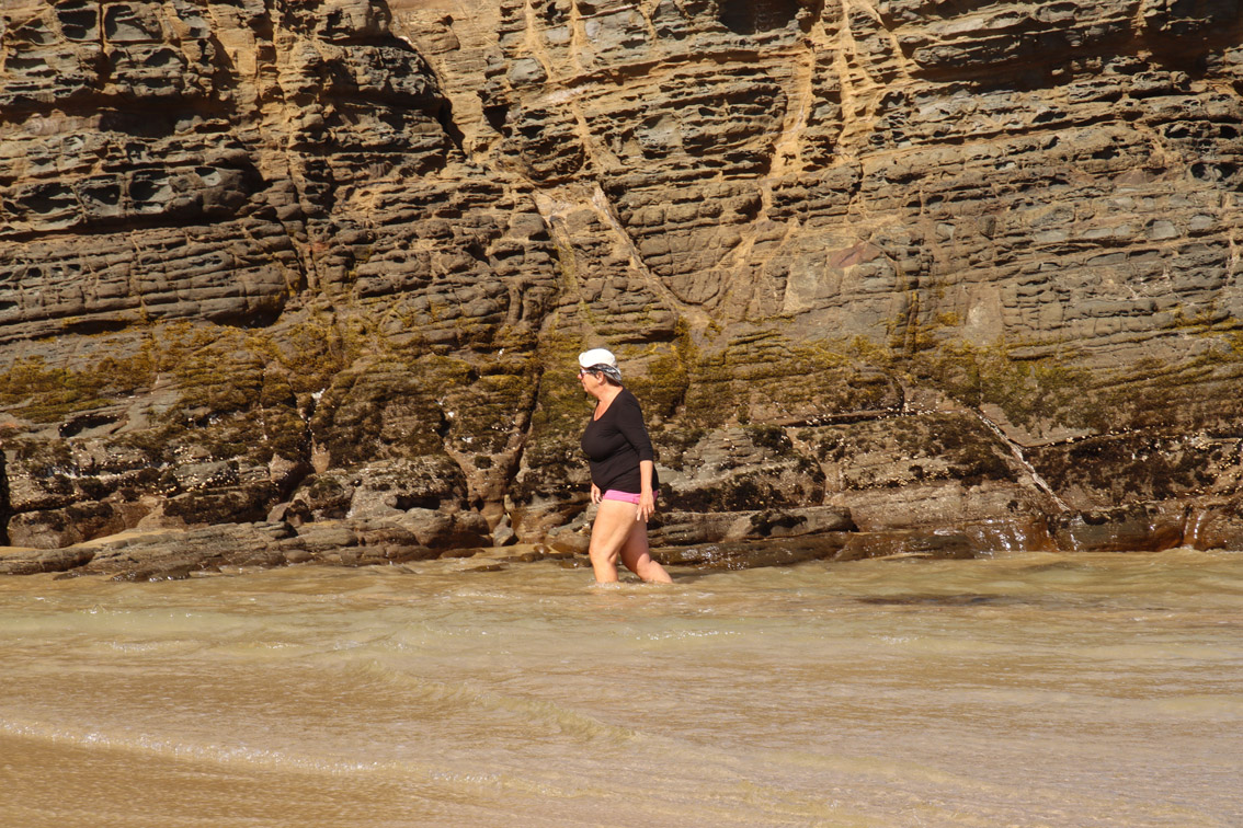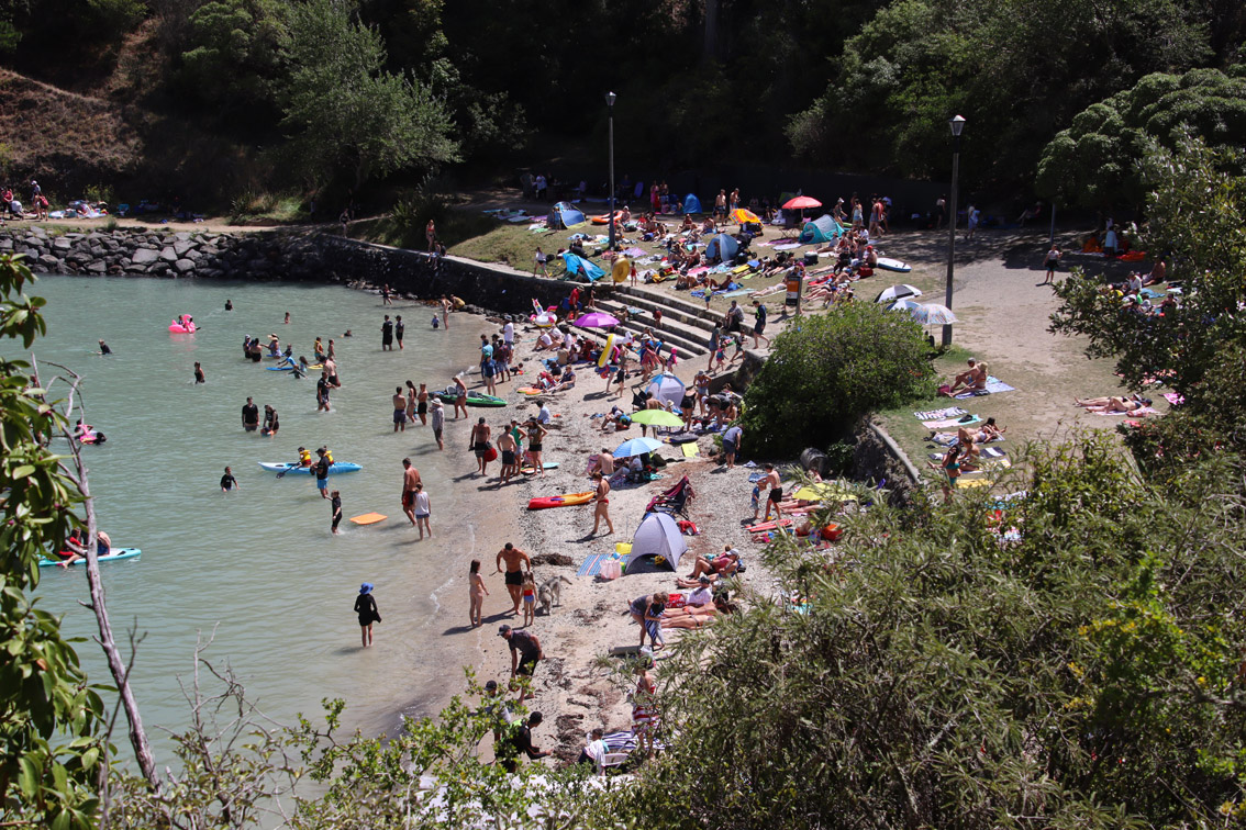 Ce Lundi est férié pour tout le monde. Les quelques commerces qui voudraient rester ouvert doivent payer une pénalité. Comme il fait un temps splendide les petites plages du fond de la baie sont noires de monde. Un sentier côtier suit toute la baie.