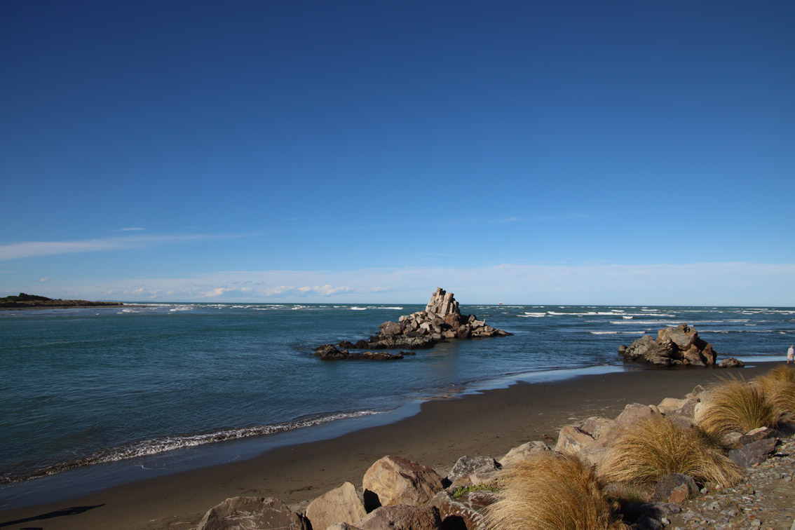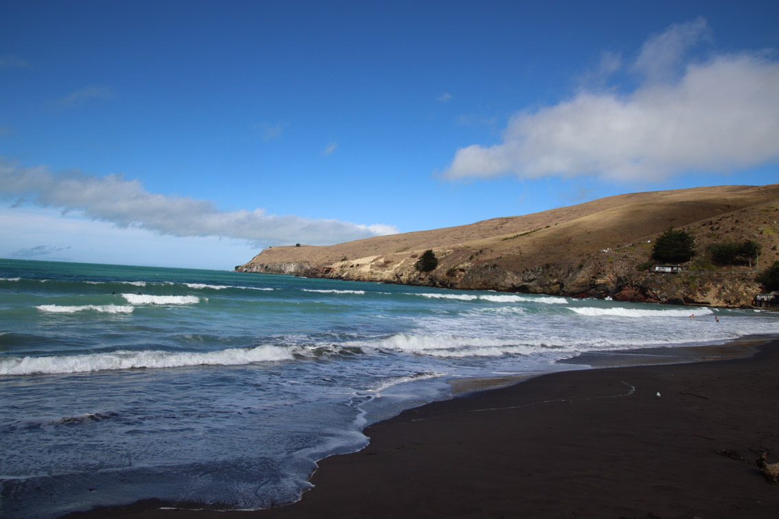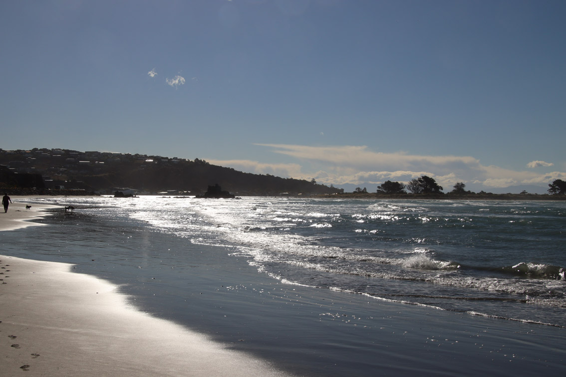 Brigitte, une française établie depuis longtemps à Christchurch et son mari Duncan, Kiwi et ingénieur en construction navale nous ont invité pour déjeuner. Ils habitent dans une superbe maison immense sur les haut de Sumner juste de l’autre côté de la montagne. Vue imprenable sur l’océan et sur la barre d’entrée de la rivière de Christchurch (que connaissent bien nos amis Richard et Barbara) ou nous allons nous promener après le repas.