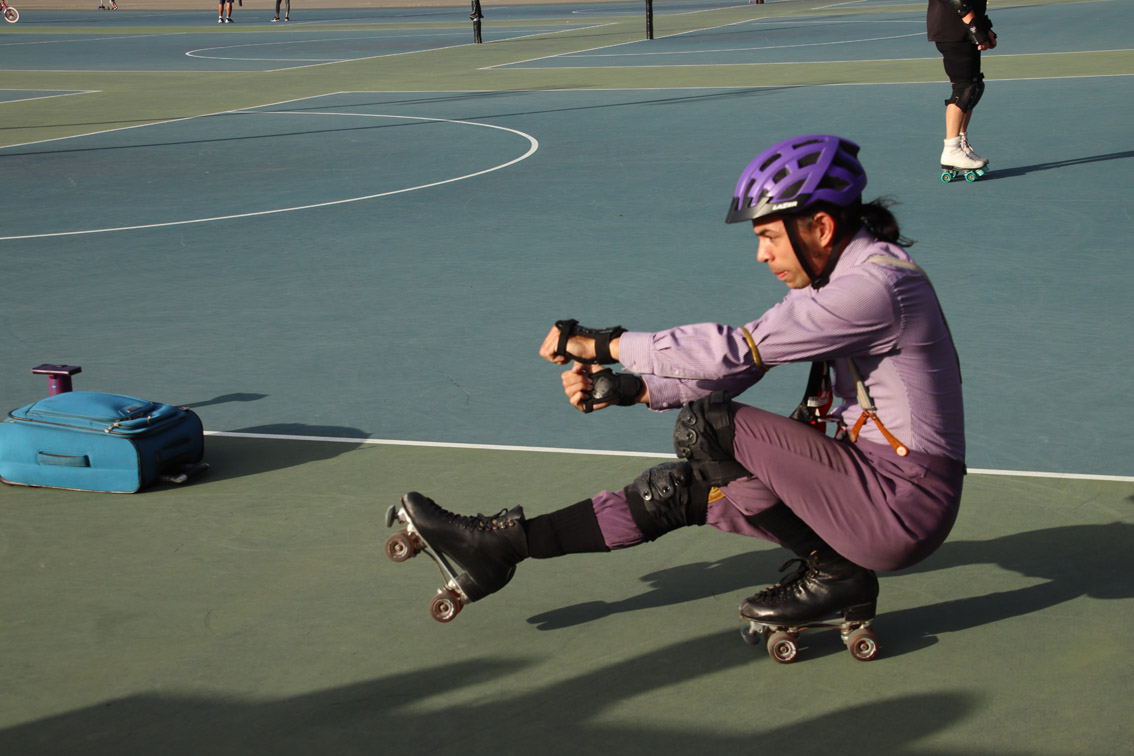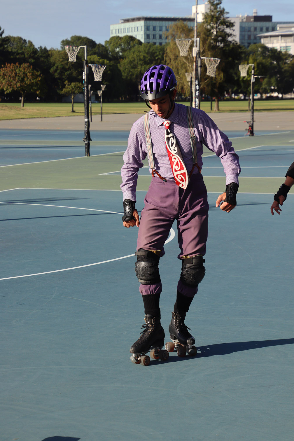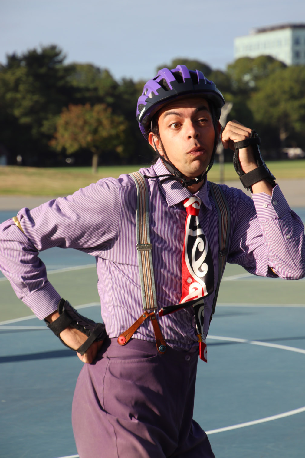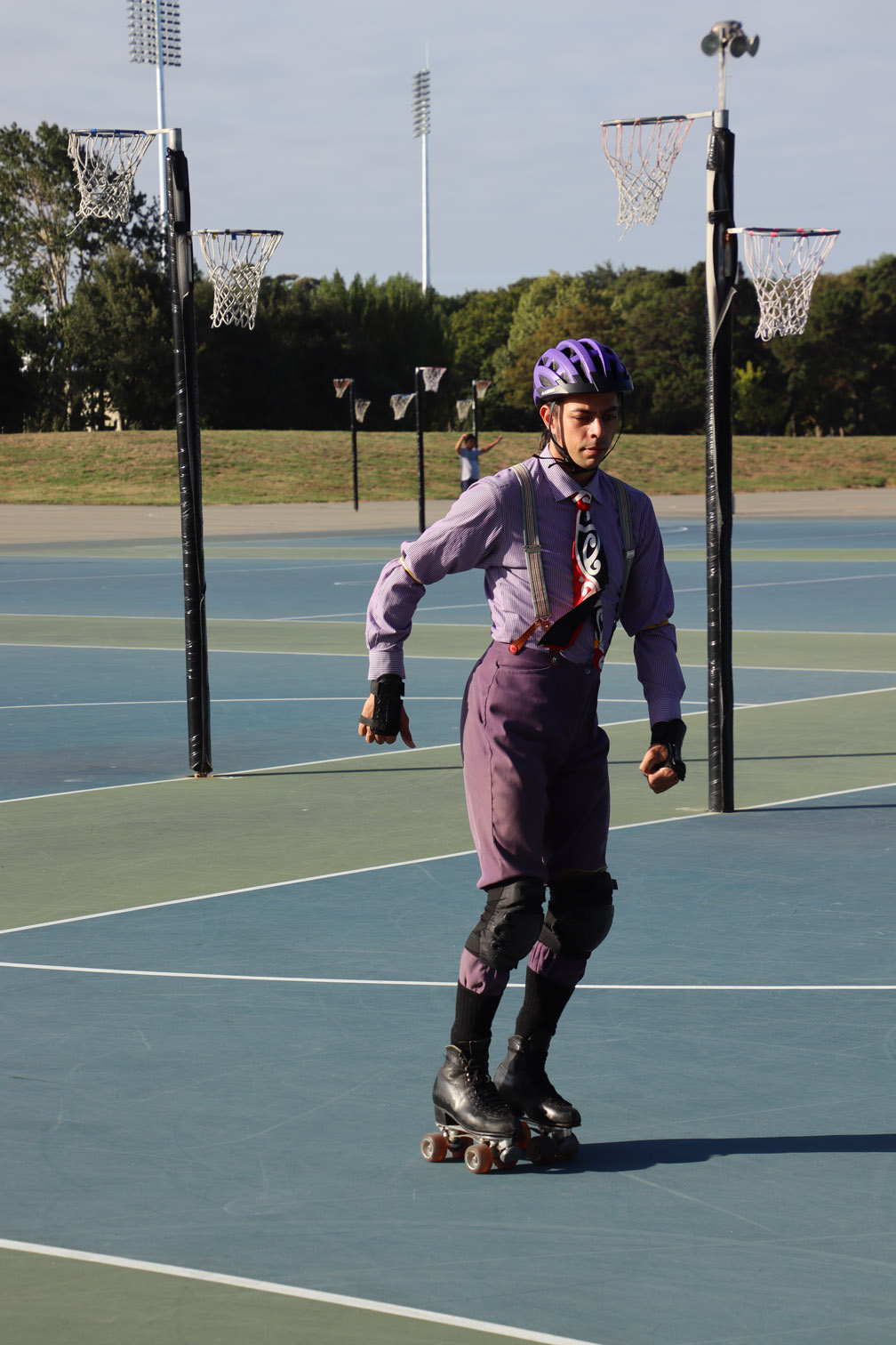 Kahurangi, Mr Purple , ou Bronsson George, comme on l’appelle parfois est un célèbre comédien de rue et patineur émérite Maori. Ce soir il assure la section danse .