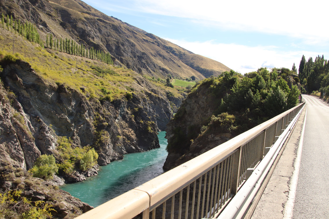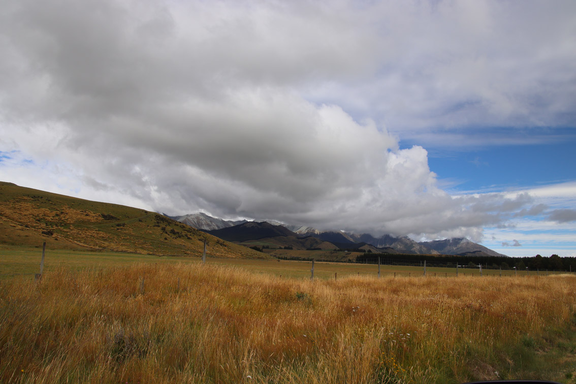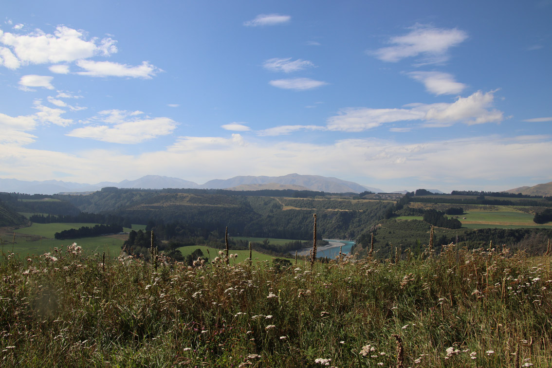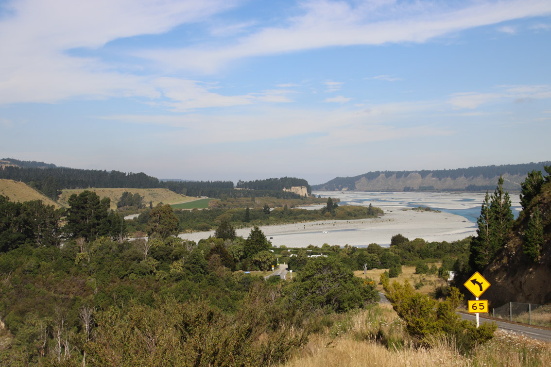 Retour sur Lyttelton par la route national 77/79 qui serpente au pied des montagnes et les gorges de la Rakaia.