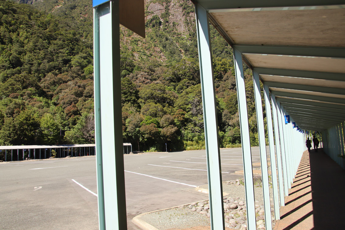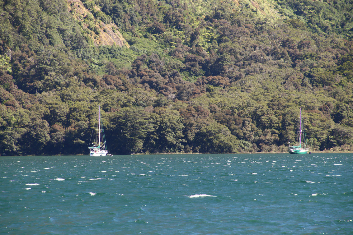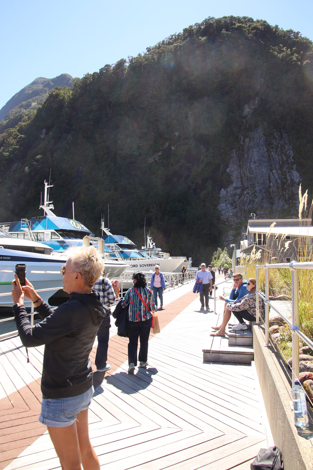 Le parking habituellement couvert de bus touristiques est désert. Il y a 2 bateaux de plaisance sur corps mort au fond du « Deep Water Basin » mais c’est le seul mouillage praticable que nous ayons vu dans tout le fjord. D’après ce qu’on nous à dit, Doubtfull, le fjord suivant disposerait de plus de possibilités.