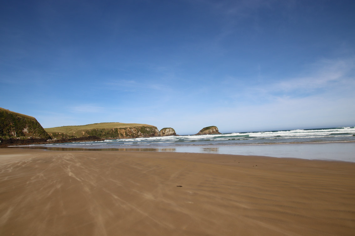 Notre périple continue par la baie de Taukuku, son immense plage (déserte bien-sûr) et ses grottes. Nous quittons le bord de mer pour passer la nuit au camping DOC de Tawanui dans la vallée de la Catlin et le parc du même nom.