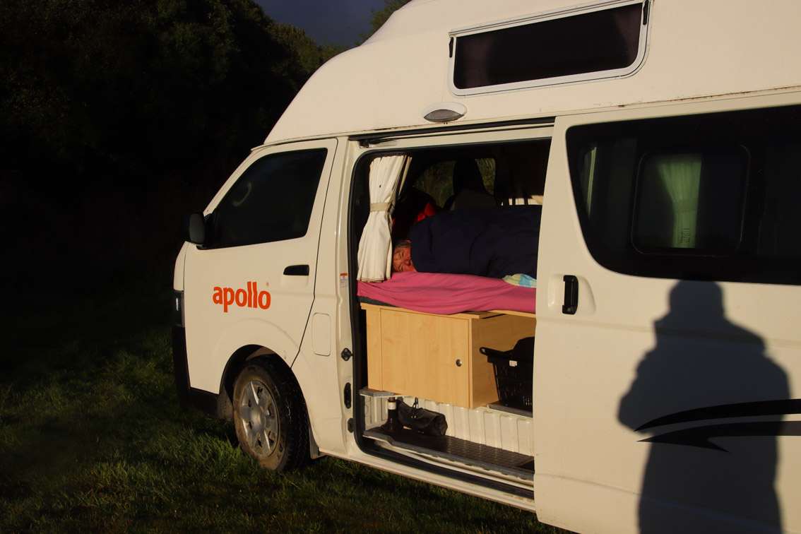 Samedi 13 février 2021. Le grib de ce matin nous prévoit des conditions tout à fait exceptionnelles sur le sud de l’île du Sud pour les 10 prochains jours: peu ou pas de nuage et zéro précipitation y compris sur la côte ouest! C’est le moment ou jamais pour aller camper. Cette fois-ci ce sera en campervan (camping car en kiwi). Coup de téléphone pour en réserver un pour le soir même. Vu le peu de clients, pas de soucis de disponibilité et les tarifs sont imbattables (à peine plus cher qu’une petite voiture). Nous aurons toute la soirée pour faire les courses pour la semaine et charger nos affaires.