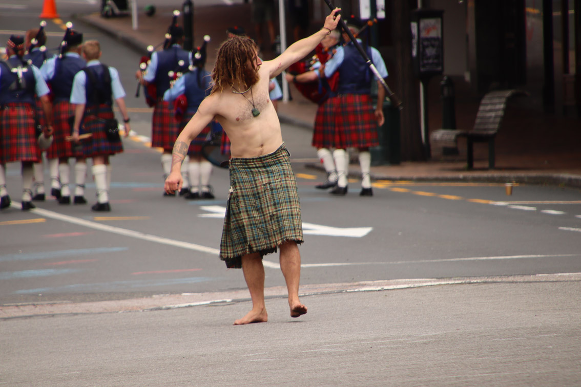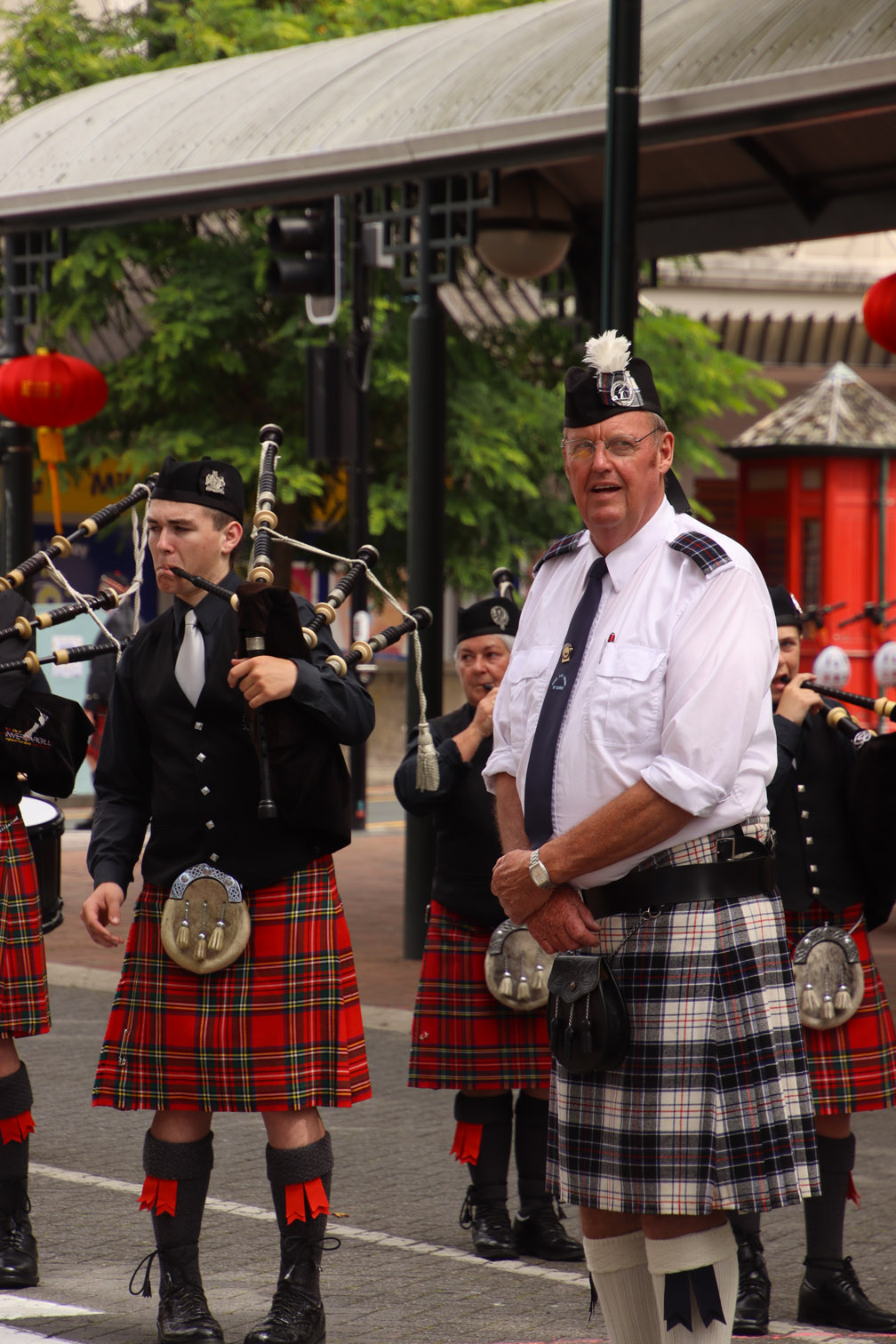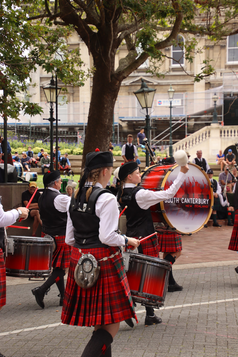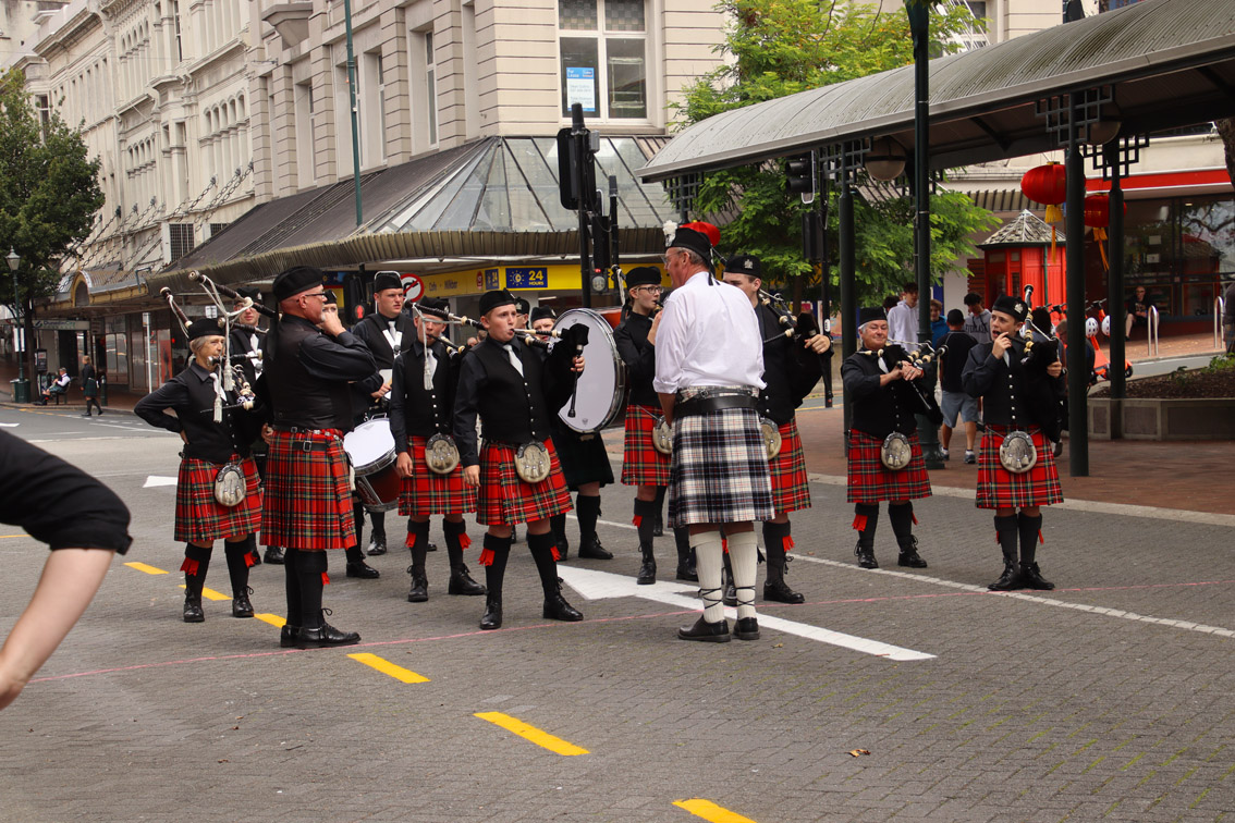 Mais notre excursion touche à sa fin (on a déjà rallongé la location de 8 à 10 jours…) et il faut songer à remonter vers Canterbury. On s’octroie tout de même un arrêt à Dunedin la capitale de la province d’Otago dont le nom est inspiré du nom Gaëlique de la ville Ecossaise d’Edimburg. Et la cité ne renie pas ses origines: nous sommes tombés en plein festival des cornemuses!