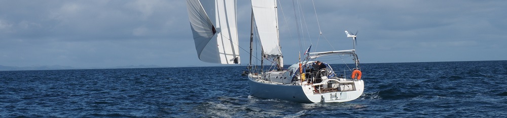 Pourquoi me direz vous ne pas faire route directement au moteur? Les Gambiers sont encore à 1100 milles. Où nous sommes placés en bordure de l’anticyclone, juste derrière cette dépression qui se comble devant nous , il ne faut guère espérer de grand changement avant la bordure de l’alizé aux environs de la latitude de Rapa, soit dans environ 500 milles. C’est un peu plus que nous permettraient les 400 litres de gasoil que nous avons à bord. Et de toute façon vu la houle qu’il nous faut escalader on n’irait pas beaucoup plus vite. Alors il faut prendre patience, gérer la resource et continuer la chasse aux risées…