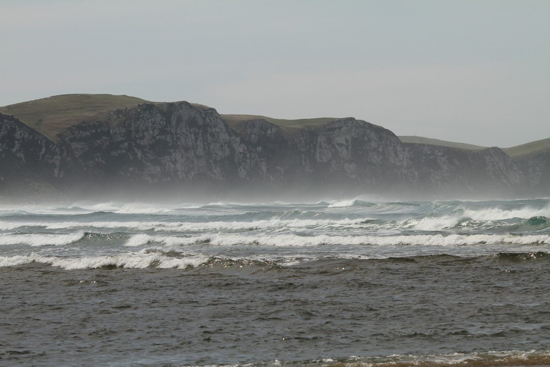 Puis c’est la côte sud et ses immenses plages de sables blanc séparées de l’Antartique seulement par l’immensité de l’océan et totalement désertées par les touristes mais toujours prisées par les surfeurs. On traverse quelques villages pittoresques comme Colac Bay ou Riverton. On contourne rapidement Invercargill (plutôt moche), petit détour par Bluff (pire) juste pour dire qu’on a aperçu l’île Stewart et le détroit de Froveau, et sans plus d’arrêts on met le cap sur les Catlins. Nuit au camping de Parakaunui Bay, un autre haut lieu du surf Kiwi.