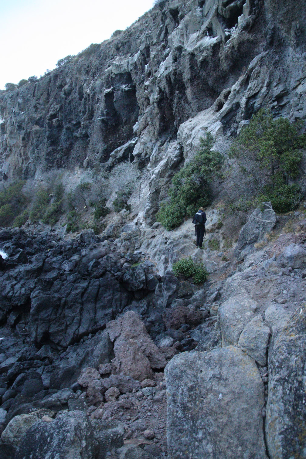 Benjyi nous guide à travers les rochers et nous fait découvrir les nids qui sont maintenant vides de petits . A cette époque, Ils ont déjà perdu leur duvet de naissance et pris la mer.