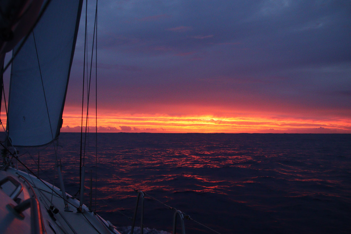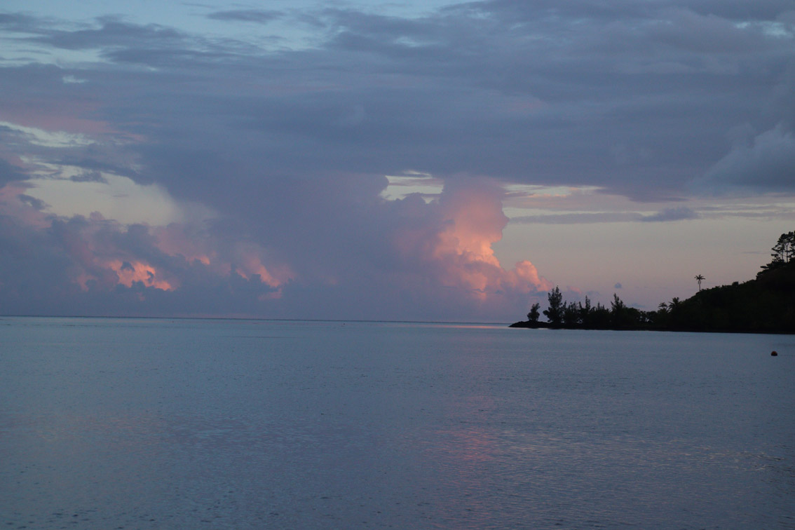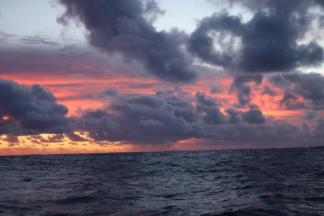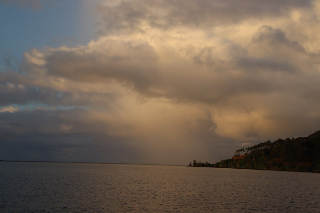 Le lever du soleil est remarquable ce matin là. Mais en milieu de matinée, de gros nuages noirs ce sont amassés et l’orage ne se fait pas attendre. Eclairs et tonnerre se rapprochent très vite. Les nuages ouvrent alors leur vannes et le déluge commence.