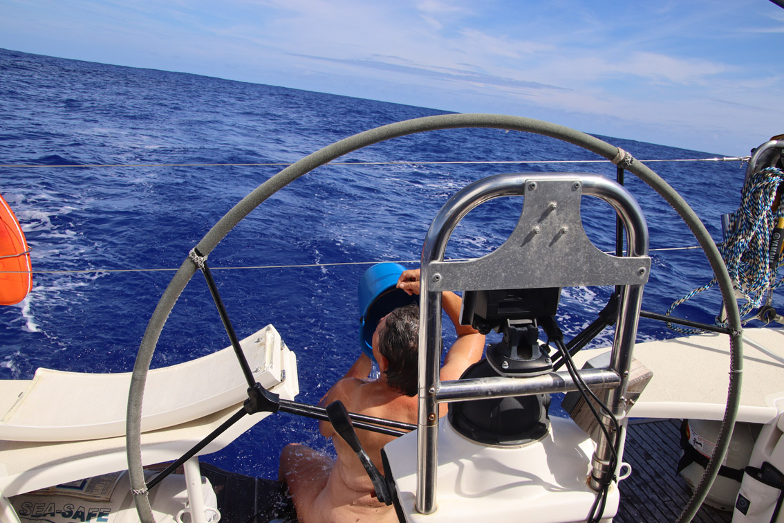 Nous profitons d’une bonne pluie pour remplir les réserves d’eau et faire de la lessive en attendant le retour du soleil.