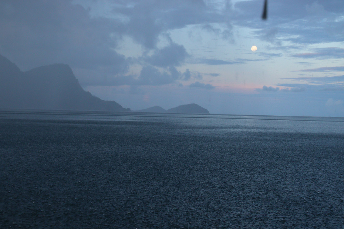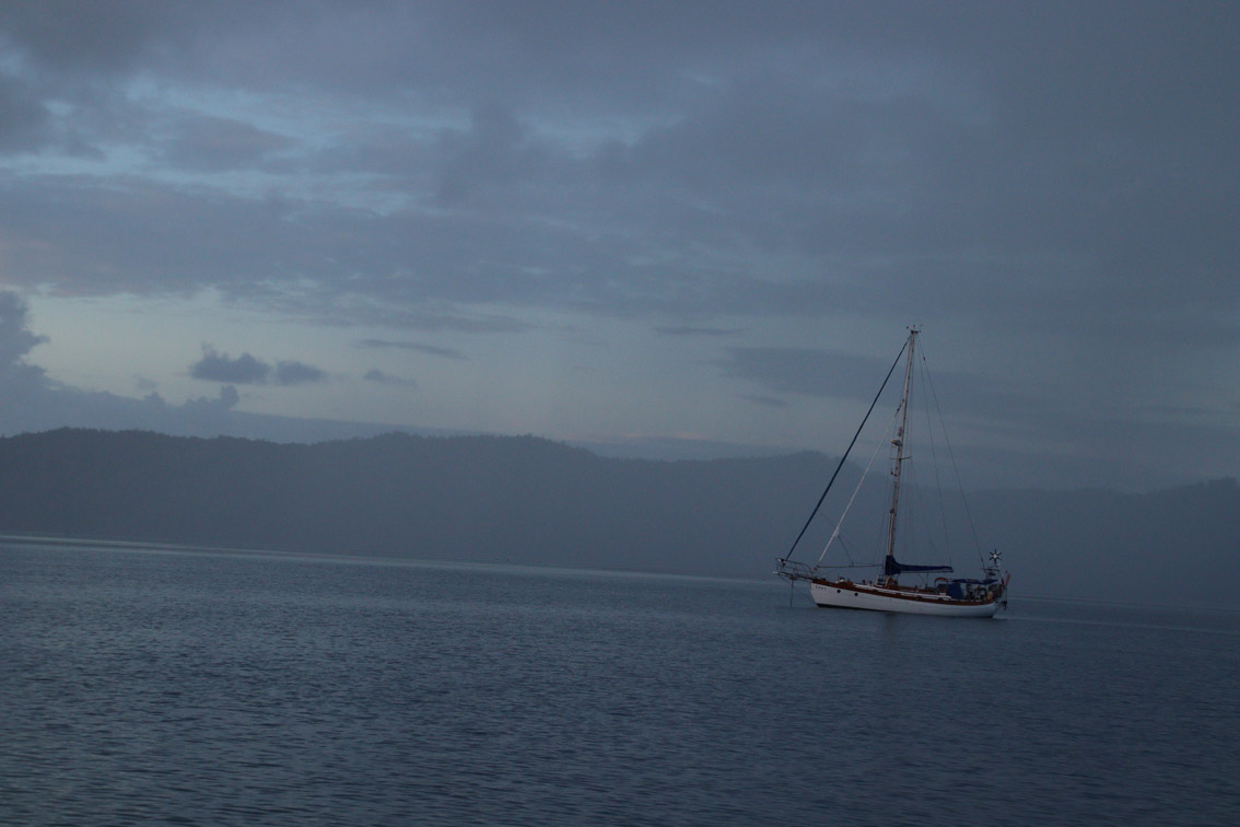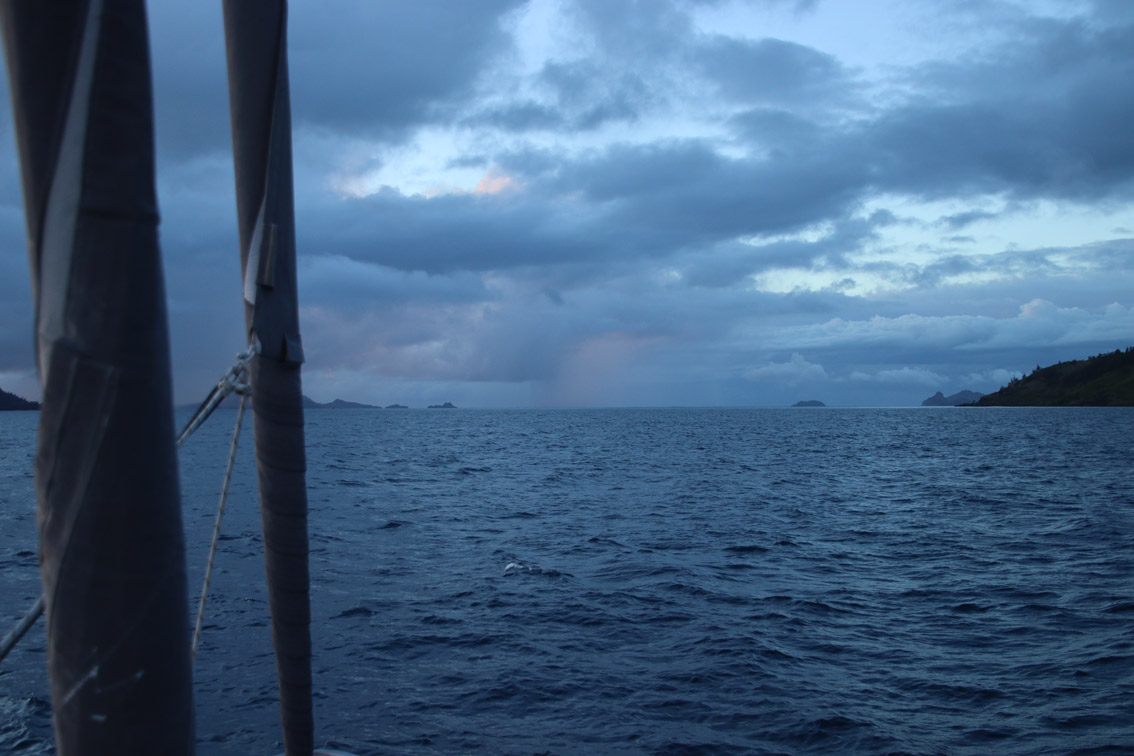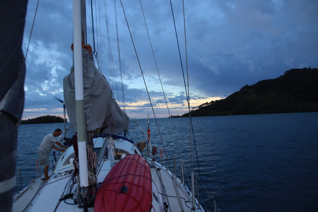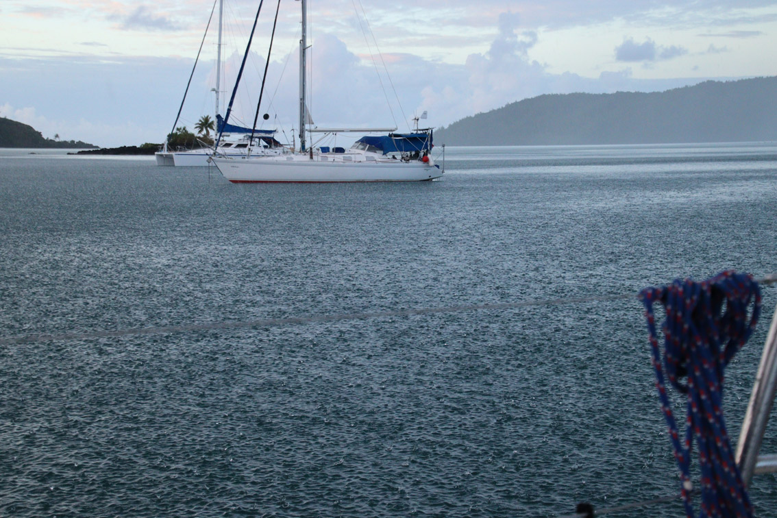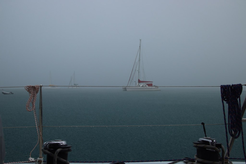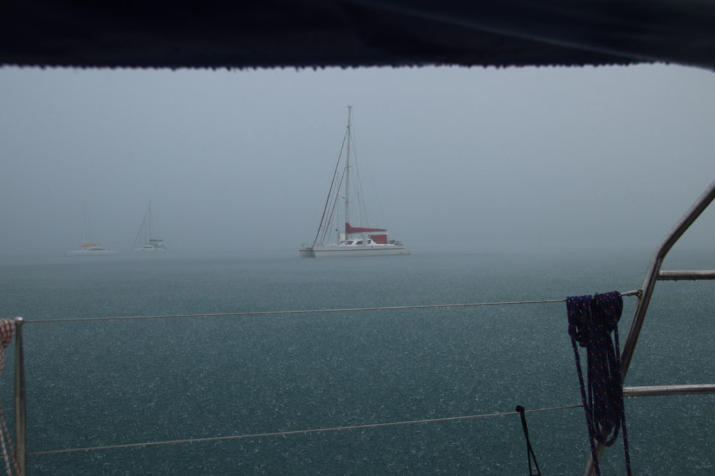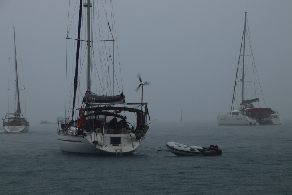 Soudain un éclair aveuglant accompagné sans aucun retard d’un coup de tonnerre assourdissant. La foudre est tombée juste devant nous à moins de 50 m. Yara et un autre bateau mouillé là y laisserons leur AIS et quelques systèmes électroniques…