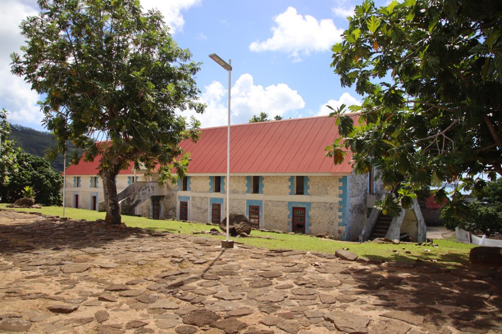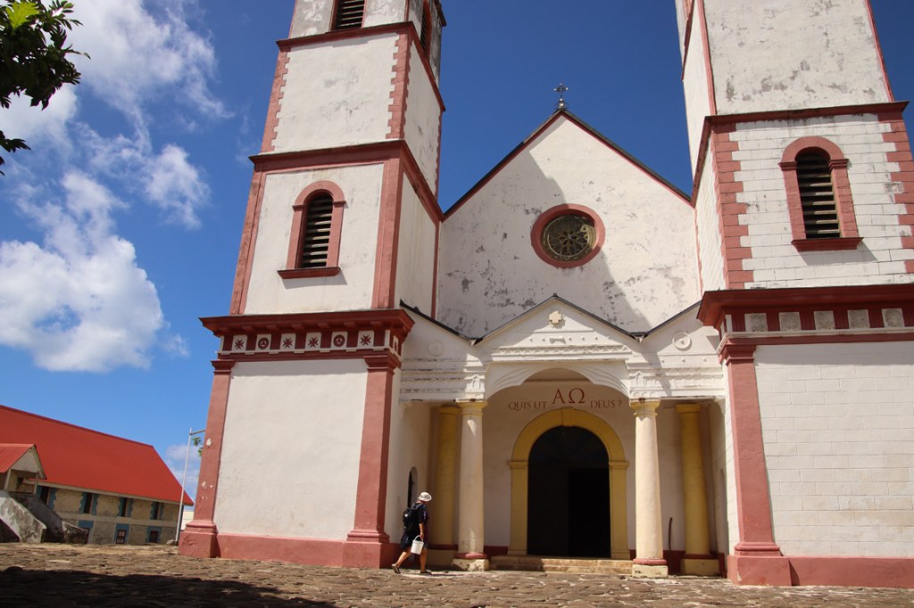 On commence par la mairie, la gendarmerie et le monument de l’île: la cathédrale et le bâtiments attenants (construits dans la 2ème moitié du 19 siècle sous l’égide du sinistre Pére Laval au prix de très nombreux morts dans la population locale)