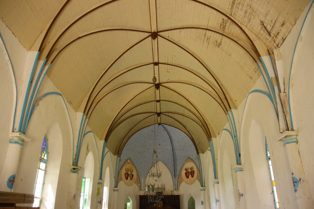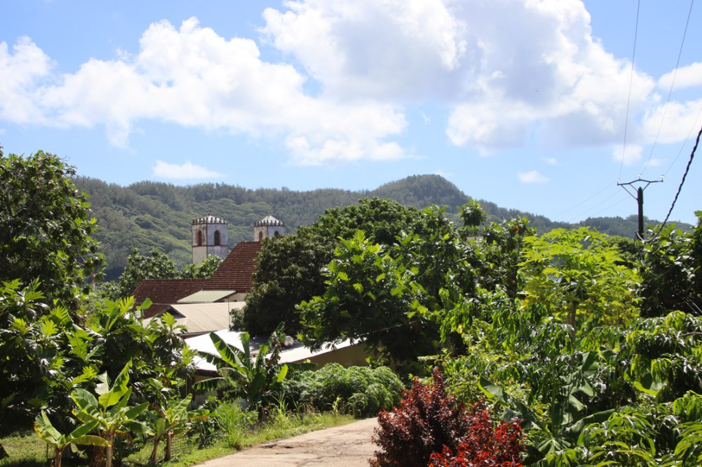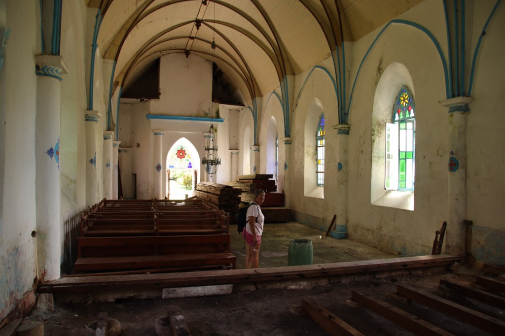 Le Père Laval à aussi sévit sur ce petit bout de terre . Il y fera construire une grande église que beaucoup d’habitants payeront de leur sang et de leur vie. Le monument est en cours de restauration par des volontaires. Il n’y a aujourd’hui plus qu’une seule famille (Hévé, son épouse et 2 de leurs enfants) et quelques célibataires qui vivent sur lîle. Le paysage est magnifique et le village est ses abords sont impeccablement entretenus mais les promenades terrestres restent limitées, la forêt est en majeure partie impénétrable et il n’existe pas de sentier permettant par exemple d’atteindre les crêtes.