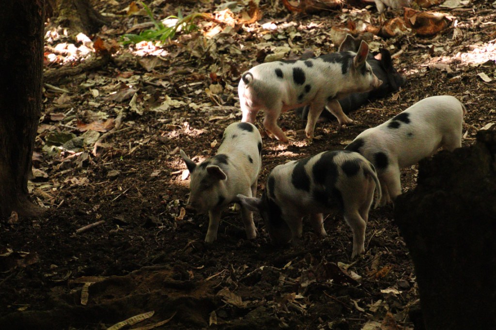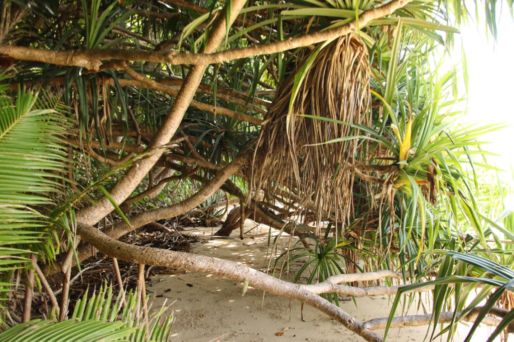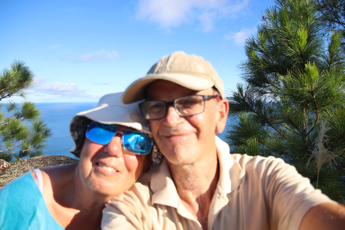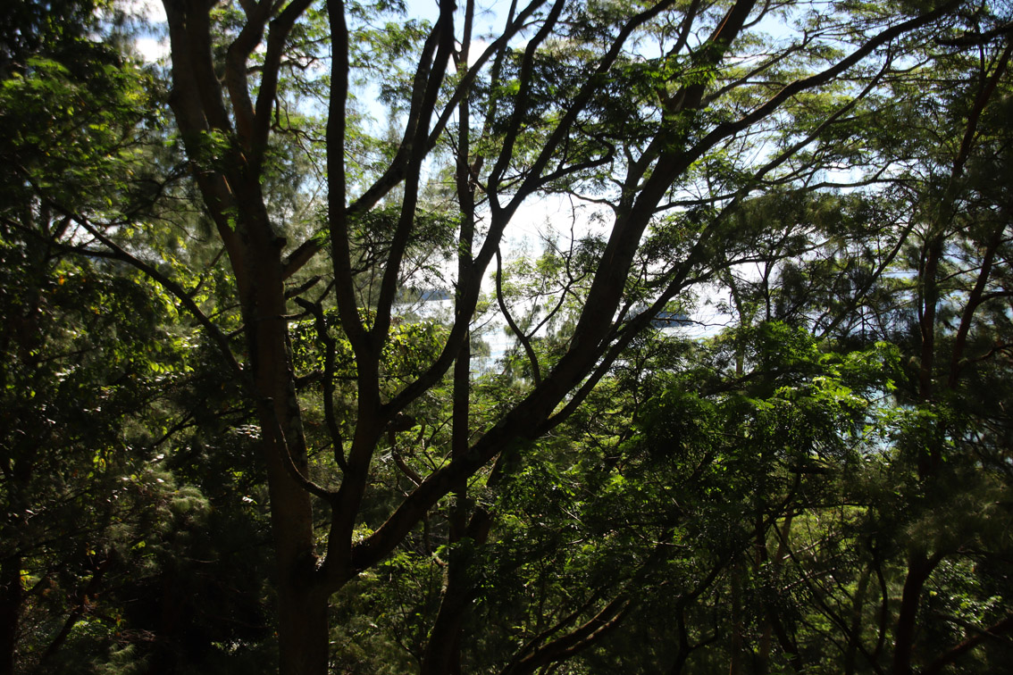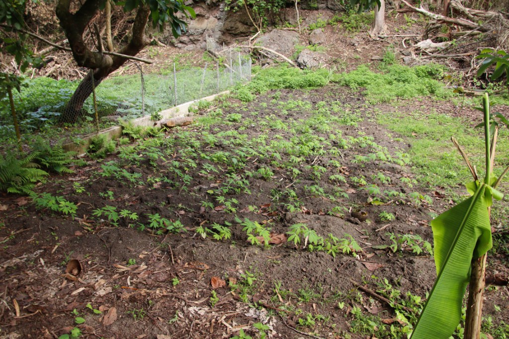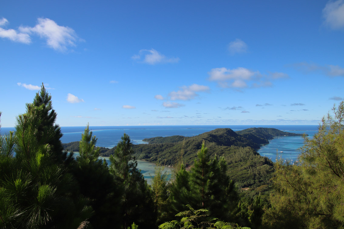 Pour passer de l’autre côté de l’île ,on prend le chemin qui grimpe à travers la forêt. Il a plu ce matin et les escargots sont de sortie. Ceci sont énormes et toxiques et surtout un fléaux redoutable pour les jardins et les cultures. Une fois sur les crêtes, on est récompensé par une vue superbe sur le mouillage.