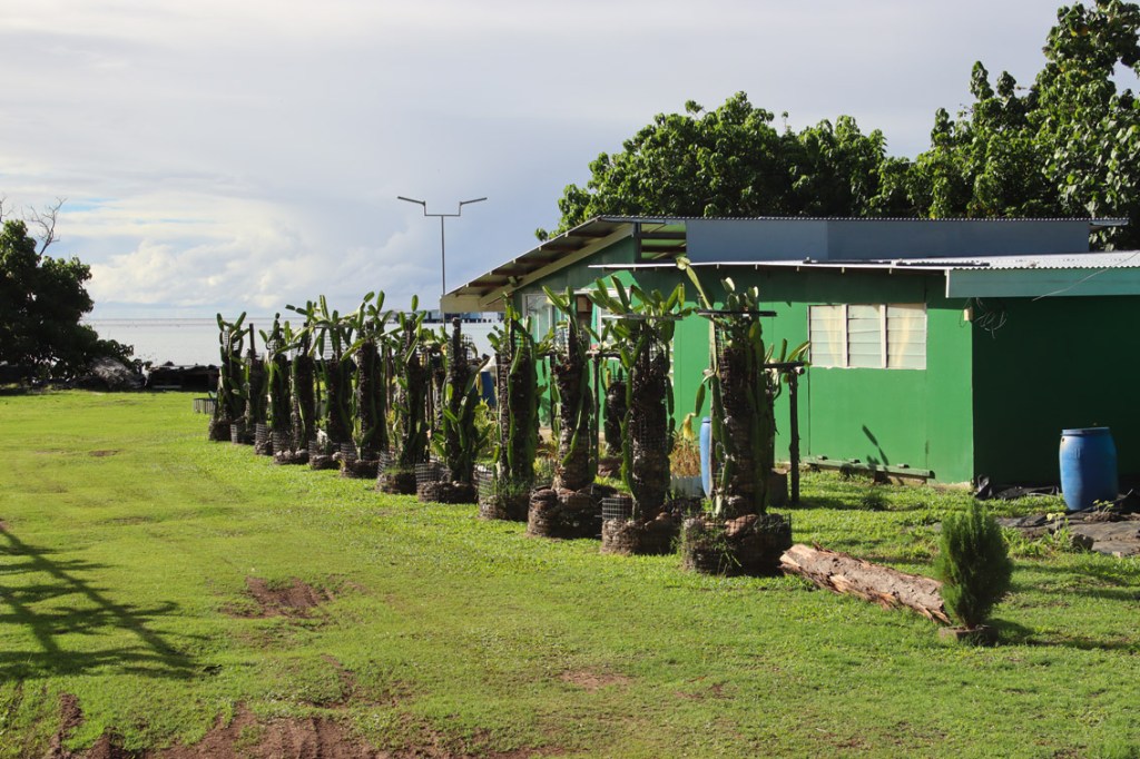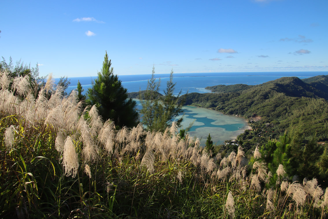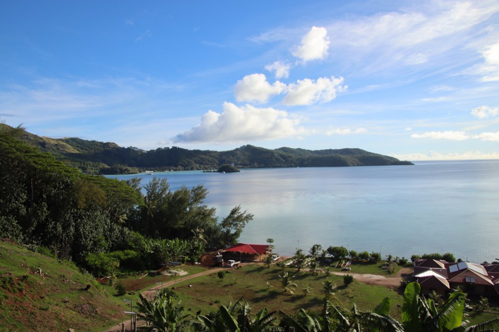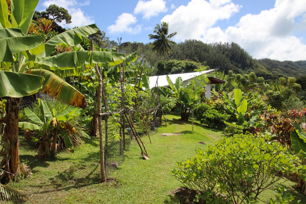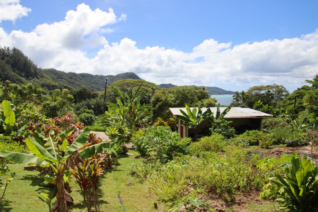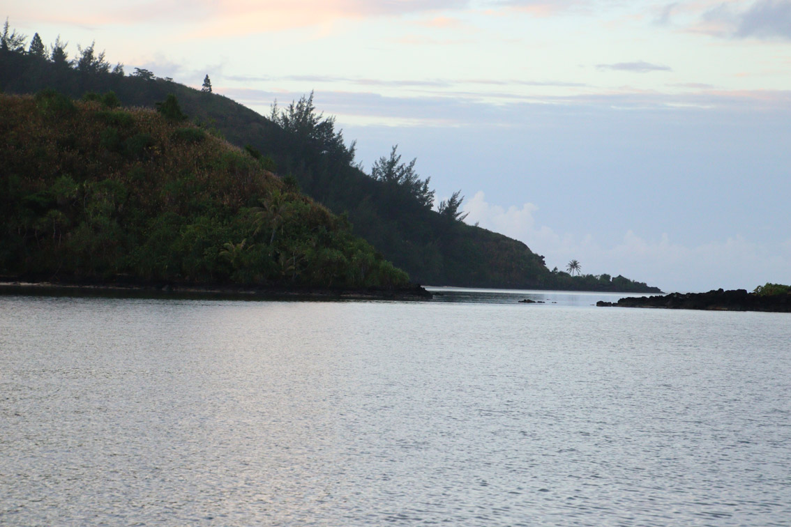 De l’autre côté la vue est toute aussi belle . Ici aussi les fermes perlières sont protégées par le lagon . Les maisons sont plus cossues (c’est là que sont les « pensions » fréquentées par les touristes les plus fortunés) et les terrains beaucoup plus grands . Ici on cultive les cactus et la vanille . Si vous n’aimez pas le chant du coq ce n’est pas une bonne idée de venir ici: le volatile y est roi comme dans toute la Polynésie .