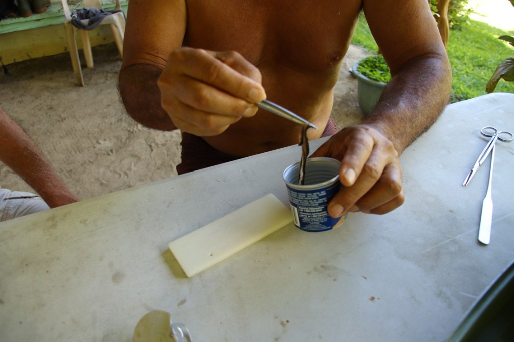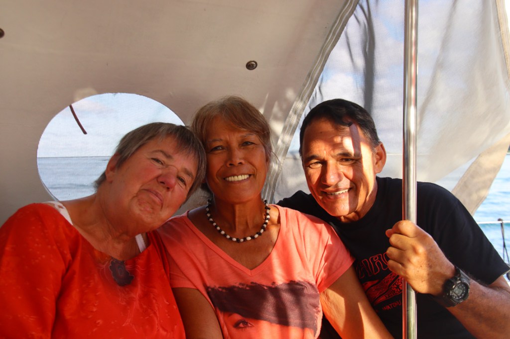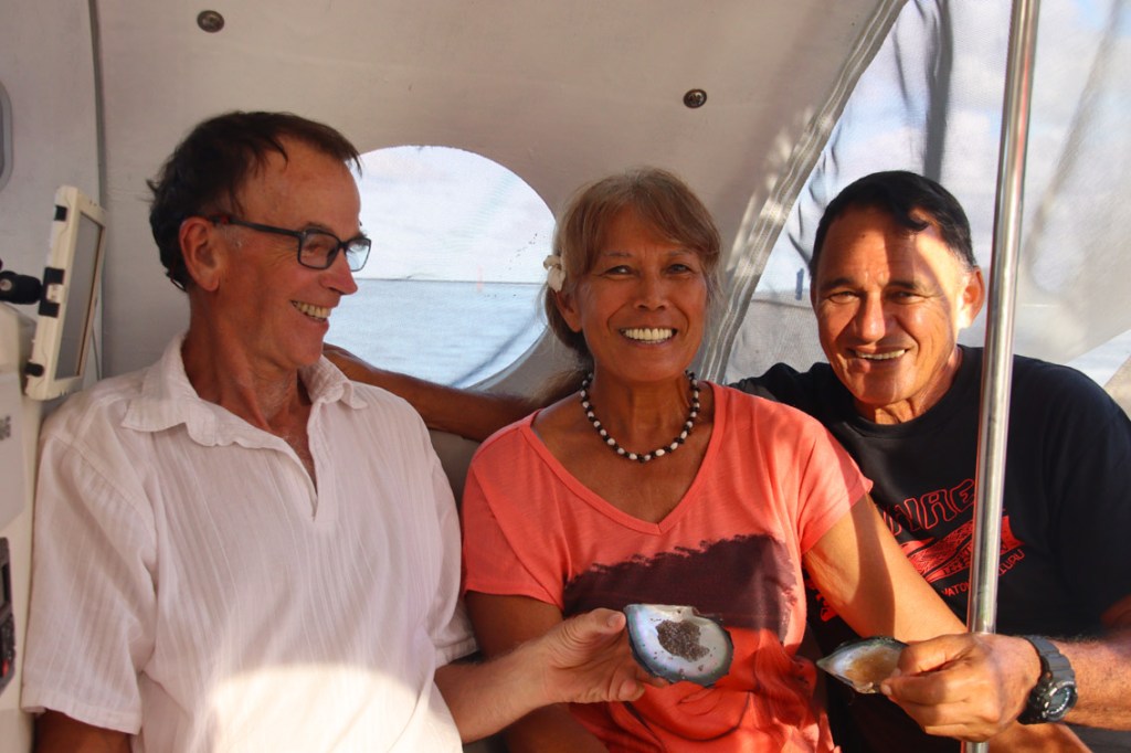 En revenant vers le village de Rikitéa par la route principale nous faisons connaissance de Tétu (Prononcer Tétou ) et de Murielle qui nous font découvrir leur jardin d’Eden , Le dimanche suivant c’est au bateau qu’ils viendront passer la journée en notre compagnie. Comme nous vous le disions, ils s’intéressent de près au greffage des nacres perlières et rêvent de développer un procédé plus fiable en trouvant un moyen de coller le nucleus au greffon… Si vous voulez en apprendre un peu plus sur la perliculture je vous conseille cet excellent article.