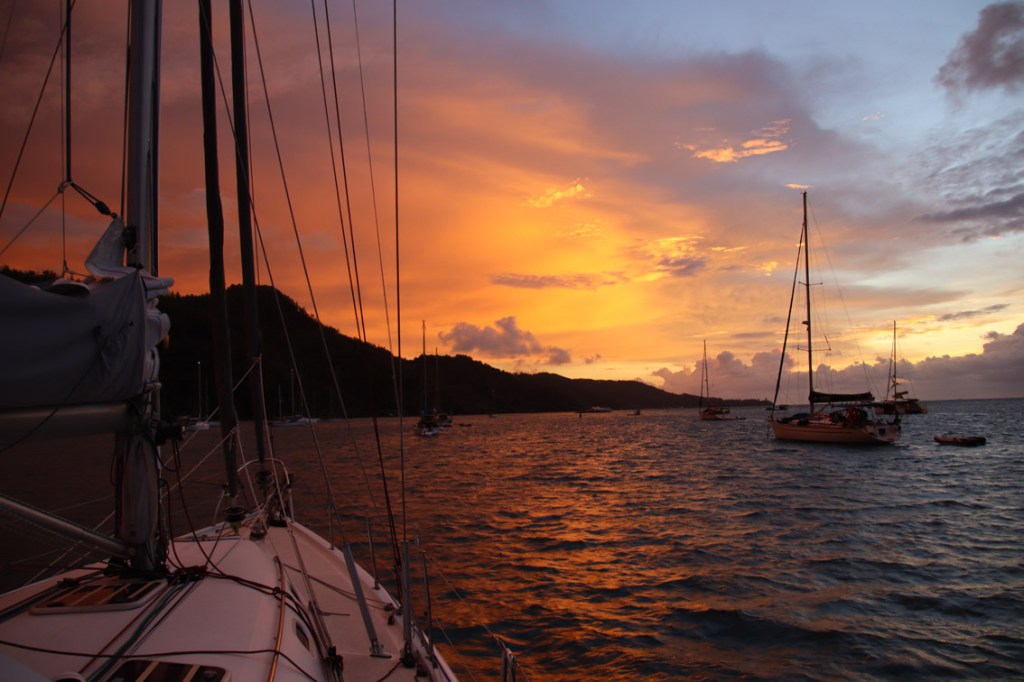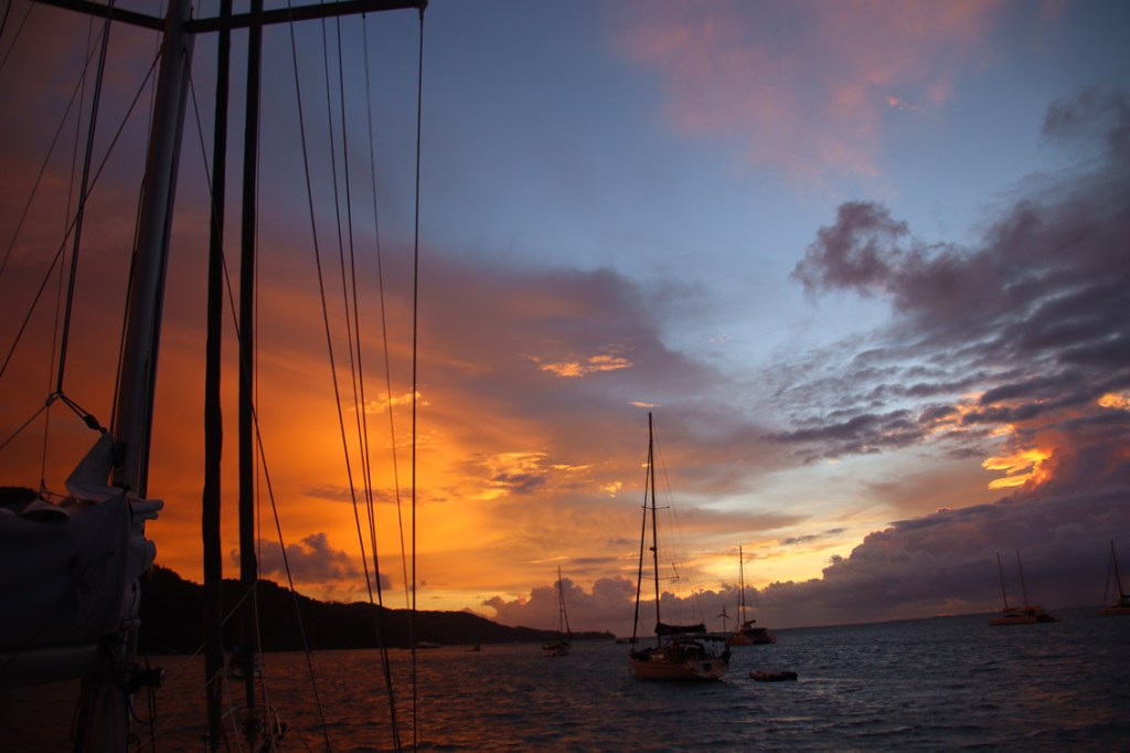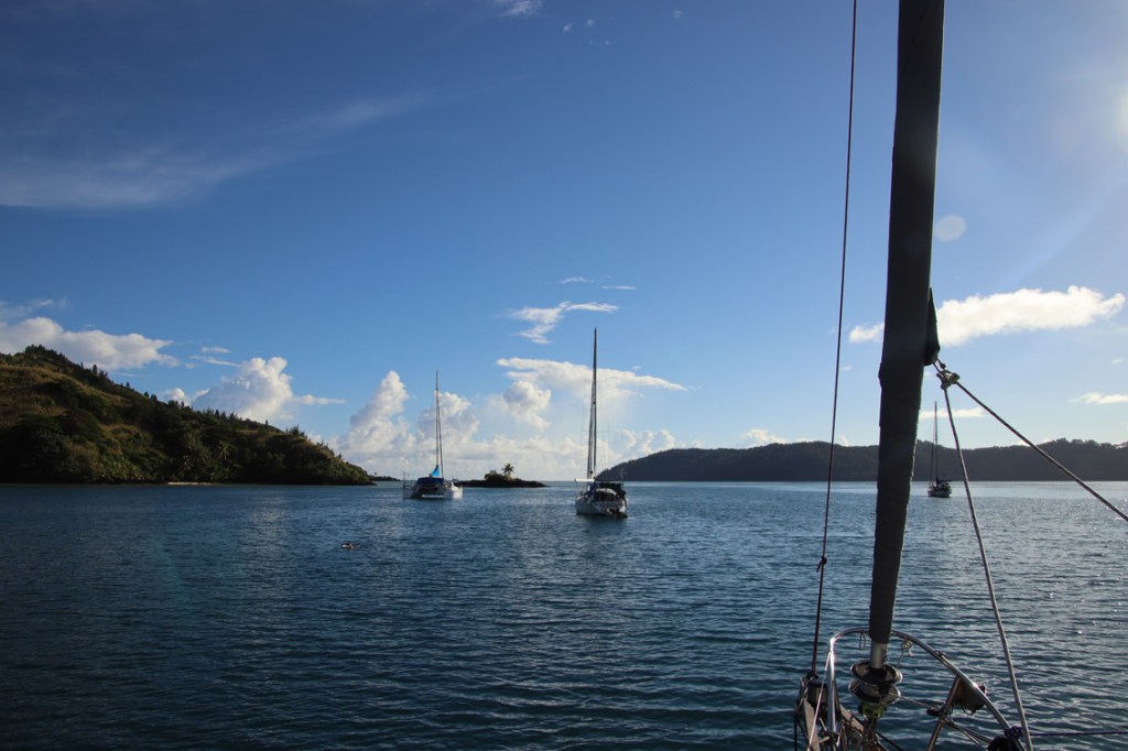 Lundi matin, nous allons rendre visite à Hervé et sa femme qui nous vendent des fruits et des légumes dont une partie est troquée contre 5 m de cordage et du savon. En fin fin d’après-midi tous les équipages présent au mouillage se retrouvent chez lui pour faire une pétanque. Une fois les boules rangées on discute autour d’un verre et faisons la connaissance de Rolf le skipper suisse allemand du catamaran Yellow. Lui et son épouse Daniela en sont à leur deuxième boucle autour du globe et ont entre autre, passé 18 mois au Japon. Son enthousiasme quand il en parle et les souvenirs émerveillés qu’il en garde nous font rêver. Décidément, ce n’est pas une destination qui laisse indifférent…