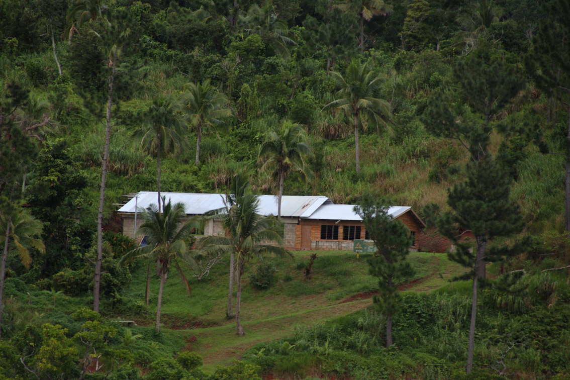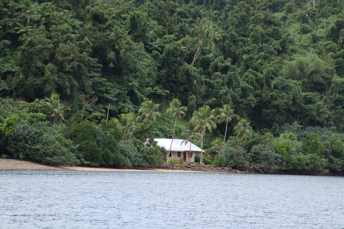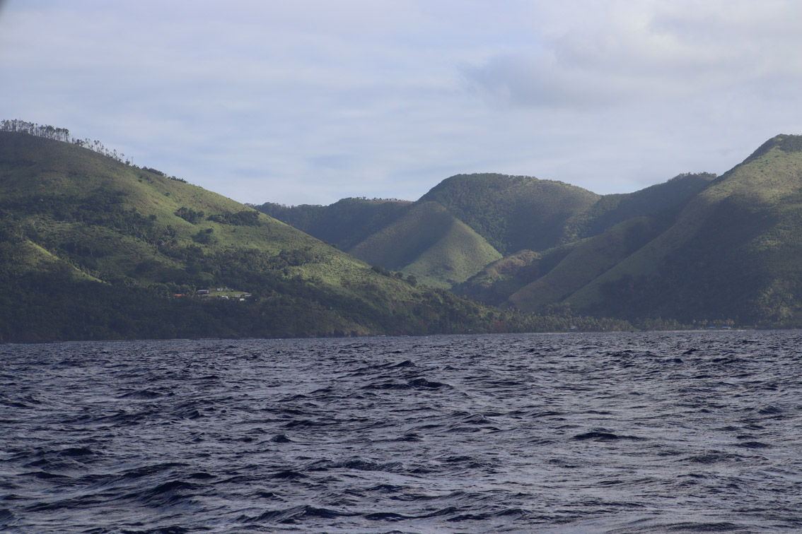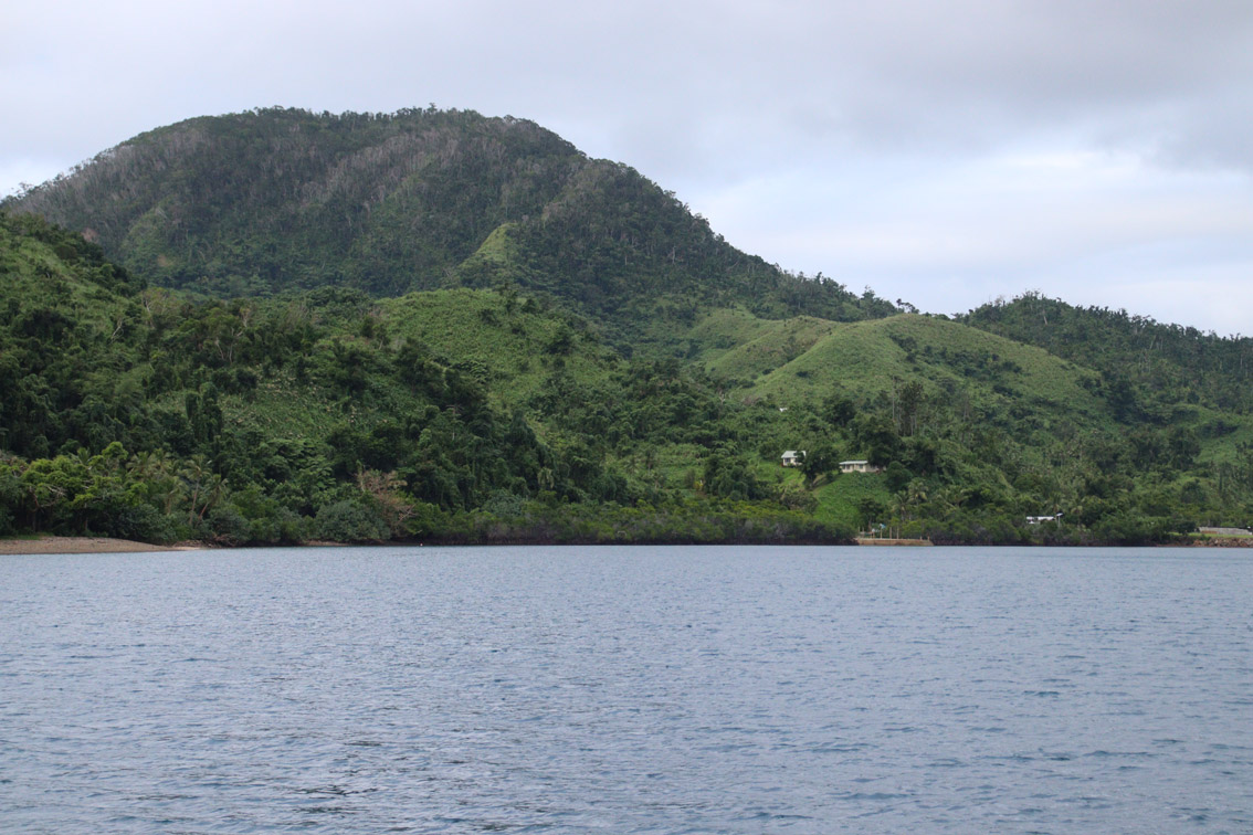 Jeudi matin, encore beaucoup de nuages mais tout de même de belles éclaircies nous levons l’ancre de la baie de Vunisea (qui en d’autres temps serait une excellente escale : très bon ancrage protégé des vents d’est à Ouest par le sud sur font de sable entre 10 et 5 m, village avec commerces et infirmerie). Nous tirons des bords le long de cette grande île (Kadavu fait près de 60 km de long) dans un vent de sud Est de 20 à 25 nœuds mais étant sous le vent de l’île la mer reste plate. Par contre, aller mouiller quelque part près de la barrière de corail de l’Astrolabe dans ce vent ne nous enchante pas. On préfère se rabattre sur la baie de Kavala très facile d’accès et bien abritée. On y arrive en fin d’après midi. La baie est superbe, entourée de hautes collines et bordée de plusieurs petits villages. Le mouillage entre une jetée et la mangrove est parfaitement calme. Parfait pour passer une bonne nuit avant la traversée (Vanua Balavu est à 200 milles).