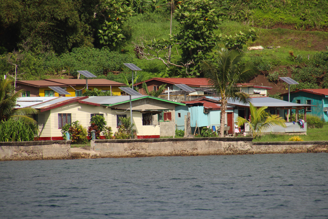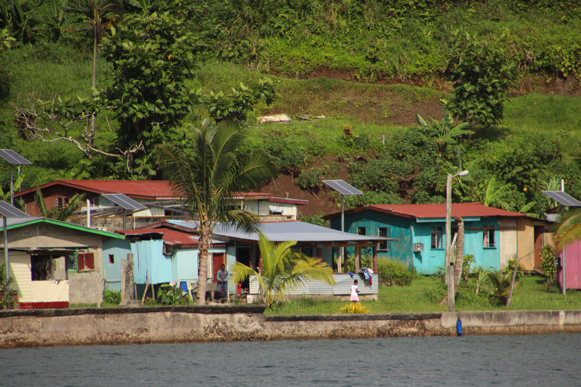 A 06:35 nous sommes devant la passe, le soleil se lève et la mer est parfaitement calme. Nous renvoyons un bout de grand voile et remplaçons le foc par la trinquette pour tirer des bords facilement sur les 8 milles qui nous sépare du mouillage que nous avons choisis. A neuf heures nous jetons l’ancre devant le village de Lomaloma. Le village est d’un calme étonnant, personne dehors, pas un chien qui aboie mais bon, on est Dimanche, on va les laisser tranquille et se reposer on verra bien demain.