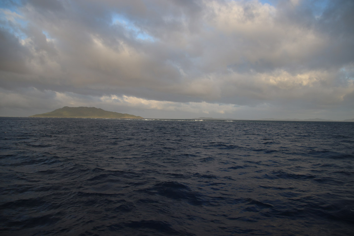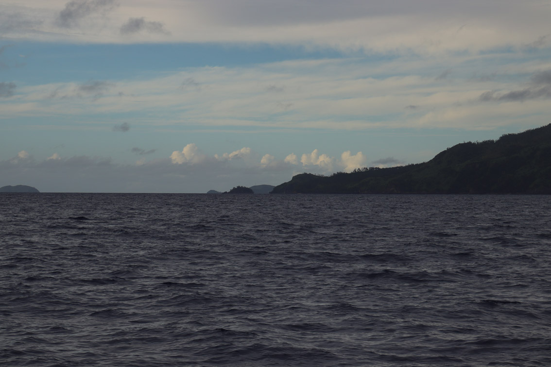 Vendu ! A 16:00 on lève l’ancre. Il vaut mieux être en avance qu’en retard, si nécessaire on ajustera la vitesse pour ne pas arriver trop tôt. La remontée du récif ce fait d’un seul bord, la nuit tombe alors que nous sommes par le travers de l’île de Dravuni. A minuit nous avons doublé l’extrémité du récif et le vent à tourné au nord nous permettant de virer. Par contre la mer est horrible, des vagues extrêmement courtes se bousculent dans tous les sens sans doute la conséquence du changement de vent et des courants dans ce passage. Rêve à Deux tape et retombe violemment dans les creux, c’est très inconfortable mais çà ne dure qu’une paire d’heure. Le jour ne c’est pas encore levé que la mer s’assagit et le vent adonne encore rendant la navigation plus agréable. On a encore 24 heures devant nous et il reste 120 milles et on est pas pressé on ajuste la voilure pour réduire la vitesse à 5 nœuds (pas facile de convaincre Rêve à Deux de se traîner mais une fois n’est pas coutume). 5 nœuds c’est la vitesse idéale pour la pêche et comme on est pas sûr de pouvoir se réapprovisionner de si tôt autant s’y mettre sérieusement. On en profite pour essayer un autre leurre, l’actuel n’ayant rein attrapé depuis son installation sur la ligne. Le résultat ne se fait pas attendre. Pendant mon quart j’étais descendu quelques minutes télécharger un grib sur l’ordi. Quand je remonte je vois la ligne faire de grandes embardées à toute vitesse derrière le bateau. Je redescends aussitôt et secoue Anne qui dort : réveilles toi on à l’air d’en avoir pris un gros. On laisse le poisson se fatiguer un peu puis on commence à remonter la ligne. Ces grands zig zag rapides font penser à un Mahimahi (daurade coryphène) mais il est d’un bleu éclatant (dans mes souvenirs les coryphènes sont plutôt vertes). Mètre après mètre on l’amène tout près du bateau mais au moment de le ramener à bord, d’un coup sec il se décroche et repart vers les profondeurs. Zut ! Mais la ligne est intacte on la remet donc à l’eau.