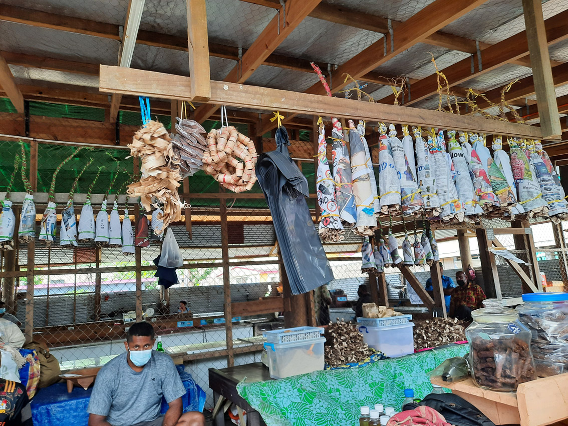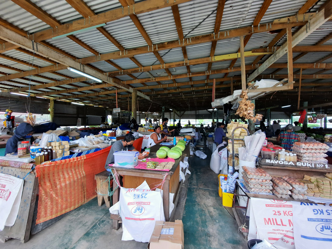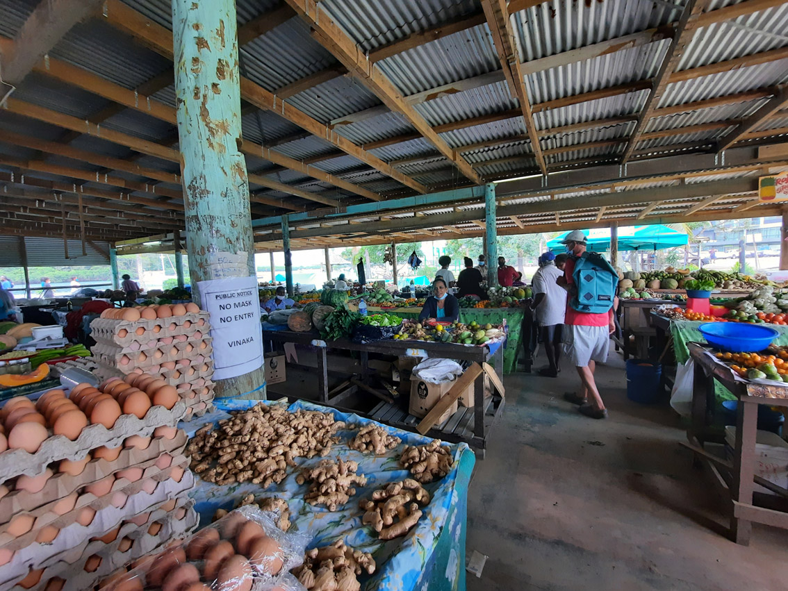 La population locale semble être composée en majorité de Fidjiens (mélanésiens) avec une minorité assez importante d’indiens (dominants dans les commerces). La ville de Savusvu c’est d’abord son marché situé sur le bord de la rivière (qui est en fait un bras de mer) juste derrière la gare routière. Ses dimensions sont certes plus modeste que celui de Labasa (voir cet article) mais il est très bien achalandé en fruits et légumes. On y a aussi trouvé des langoustes, du poisson et des écrevisse et bien sûr il y a la section dédiée au kava. Le long de la rue principale, il y a des tas de boutiques de toutes sortes allant de la quincaillerie aux fringues ou à la pharmacie. On notera la présence de deux boulangeries dont le pain est bon. Pour nous français, c’est toujours le style pain de mie mais au moins il est bien cuit et même un peu croustillant. Côté supermarché en plus de nombreuse petites supérettes il y en a trois de bonne taille. MaxValue presque en face de la marina, Suntek et Newworld l’un en face de l’autre au centre ville. Le mieux achalandé en produits européens est le Newworld (ce n’est pas la même chaîne qu’en Nouvelle Zélande) on y a même trouvé de la semoule de couscous et du vinaigre balsamique. Il est sans doute un peu plus cher que les deux autres pour les produits locaux les plus courant. Juste en face sur l’arrière du bâtiment qui abrite la banque Westpac il y a l’un des deux marchand de vin et spiritueux son choix est limité mais les prix sont raisonnable. Newworld et Suntek ont un embryon de rayon vins et alcools. Sealover’s wine de l’autre côté de la marina offre le plus grand choix et fait aussi épicerie fine (le seul endroit ou on ait pu trouver du lard fumé en tranches et de la polenta) mais les prix rivaliseraient avec Fauchon s’ils n’étaient pas en dollars fidjiens . A signaler aussi tout au bout de la rue principale, sur la gauche avant de tourner vers l’aéroport il y a une marchande de légume indienne dont la boutique ne paye pas de mine mais qui vend, entre autre choses, des ananas succulent (alors que personne n’en vend au marché) et du toffu frais.
