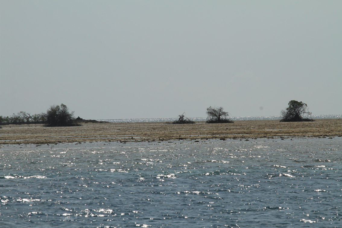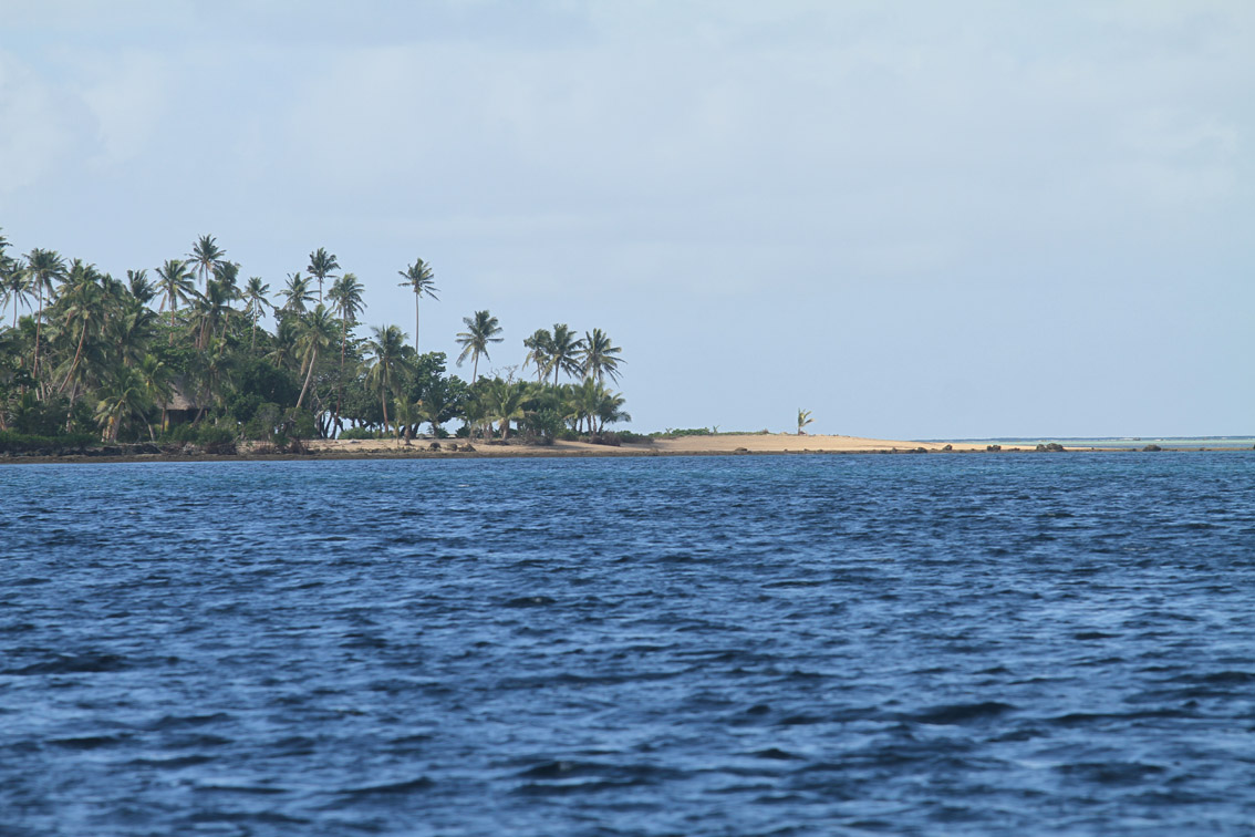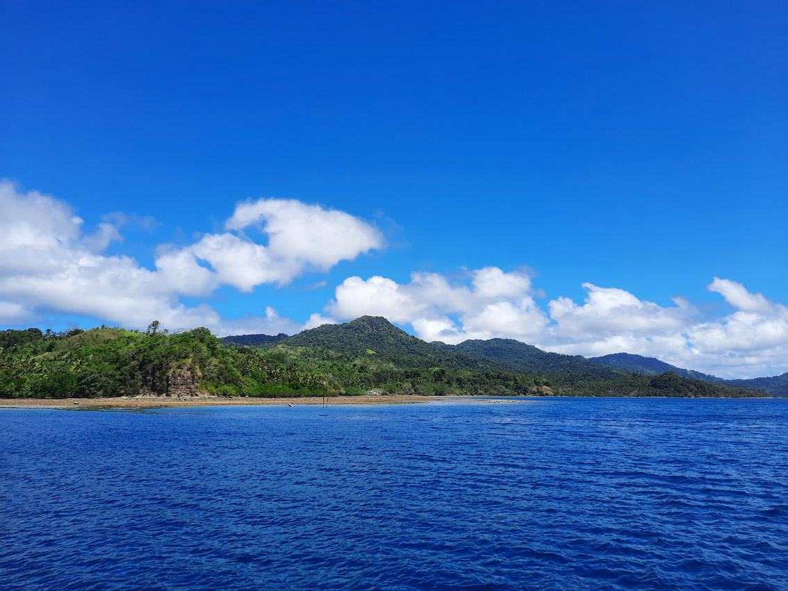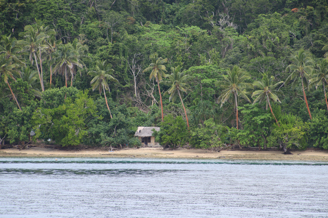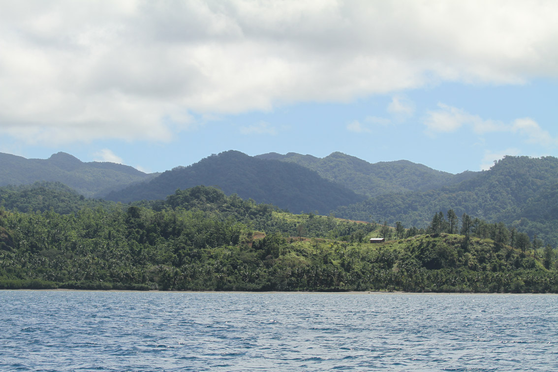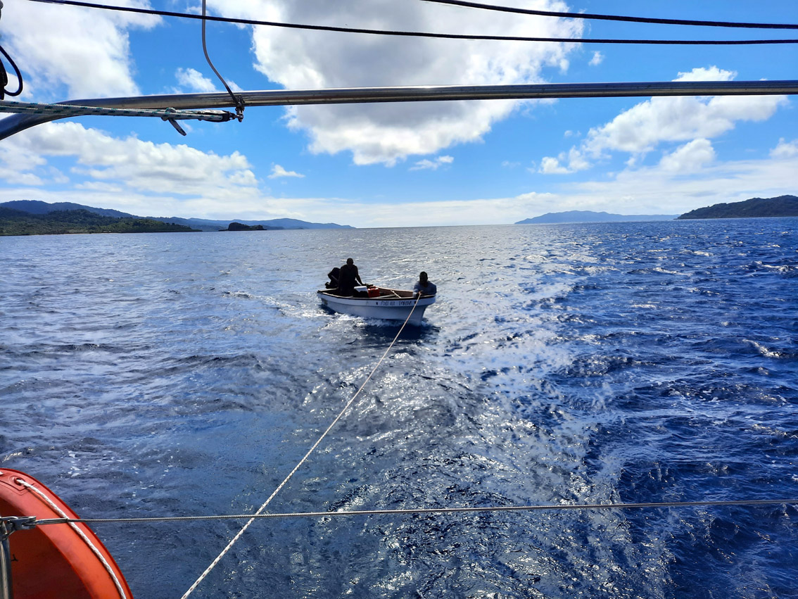 Dimanche, la météo prévoit du vent un peu plus fort et un peu plus sud. On décide de tirer quelques bords jusqu’au fond de Buca Bay, qui sur le papier semble bien protégée des vents de ce secteur. A mi-chemin nous croisons une barque avec deux pêcheurs. On leur fait signe de la main en passant. Il ne nous répondent pas tout de suite mais quand ils le font au bout de quelques minutes ce n’est plus le petit coucou amical habituel mais des grands signaux de bras qui ont l’air pour tout dire un peu désespérés. Auraient-ils un problème? On affale aussitôt les voiles et rebroussons chemin vers eux au moteur. Ils sont bien contents de nous voir. Ils sont en panne d’essence en plein milieu de la baie et une bonne brise d’une vingtaine de nœuds les pousse vers le large…Nous les prenons en remorque et le conduisons jusque devant leur village. Tout le monde rit beaucoup de l’incident qui aurait pu mal se terminer vu le peu de bateau sur la baie. Ils nous proposent de rester un peu en prenant le corps mort devant leur village qui est d’après eux prévu pour des gros bateaux mais il n’a manifestement pas servi depuis longtemps et l’amarre qui retient le flotteur casse quand nous essayons de la prendre. Il y a plus de 20 m à quelques mètres du récif et l’endroit n’est pas très protégé nous préférons repartir vers le fond de Buca bay ou les profondeurs sont plus raisonnables.