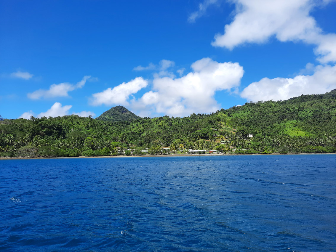 Après une première nuit à l’ancre devant Paradise resort à Taveuni la nouvelle tombe durant le petit déjeuner (quand nous avons du réseau nous essayons de lire ou d’écouter les journaux locaux et internationaux) des cas de COVID 19 ont été identifiés a Kadavu et dans au moins une des îles du group Lau et par mesure de précaution, le gouvernement interdit l’accès de ces îles. Ce n’est donc pas le moment d’y aller: mais vu le nombre d’îles du pays et sa longueur de côtes il y a encore de quoi faire. On change donc de programme et mettons le cap sur la côte Est de Vanua Levu découpée de baie profondes et bordée de nombreux îlots, le tout protégé par une barrière de corail à fleur d’eau. On pourrait penser que les petits villages nichés au fond de ces baies sont protégés des pires intempéries. Eh bien non! En décembre dernier le cyclone Yasa est passé et a tout détruit: habitations, jardins et cultures. Mais cela n’a pas affecté la gentillesse et l’hospitalité des habitants.
