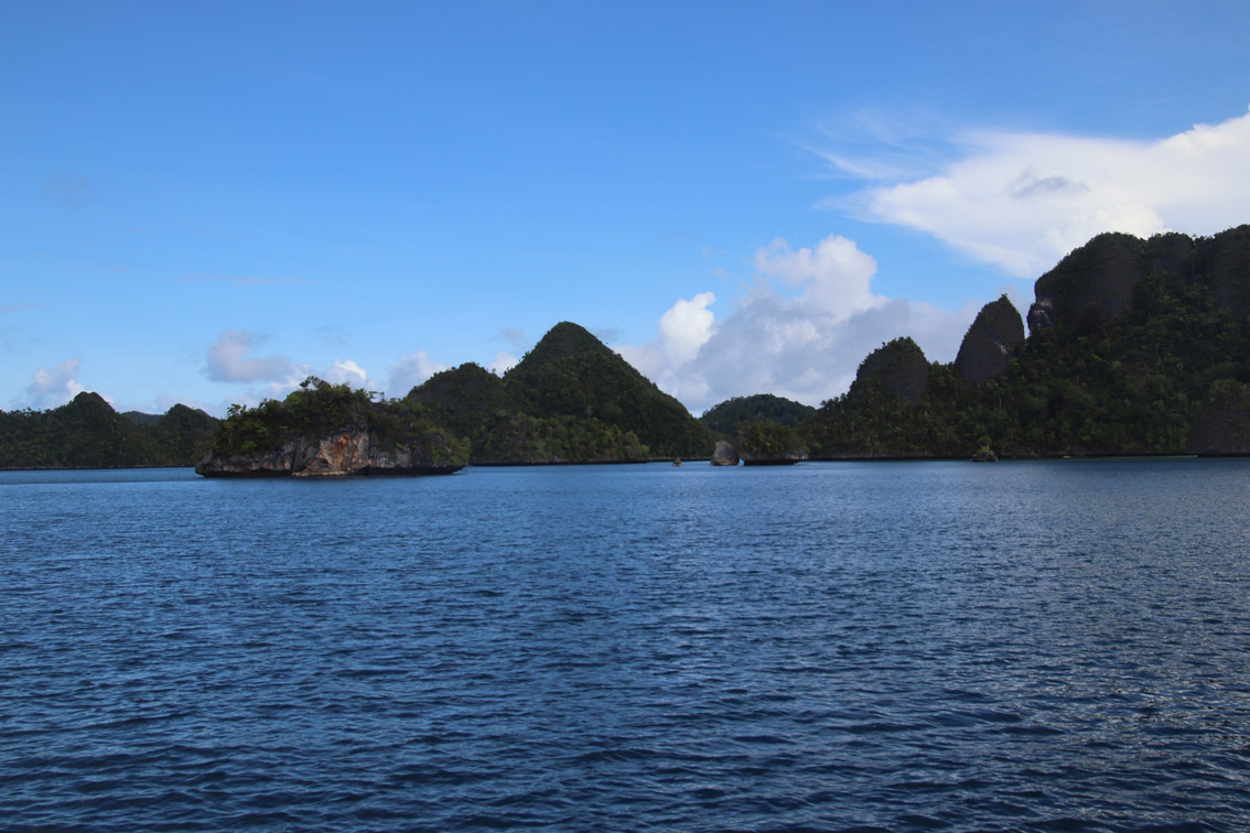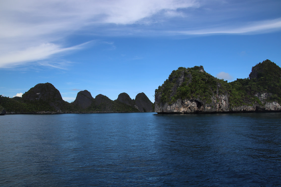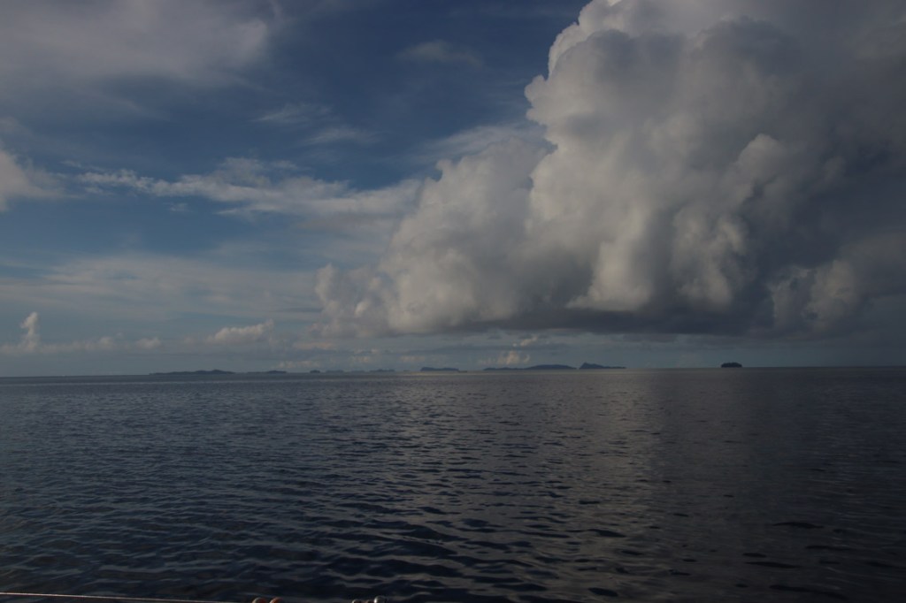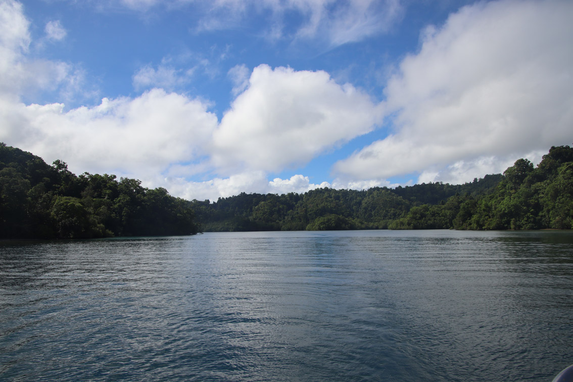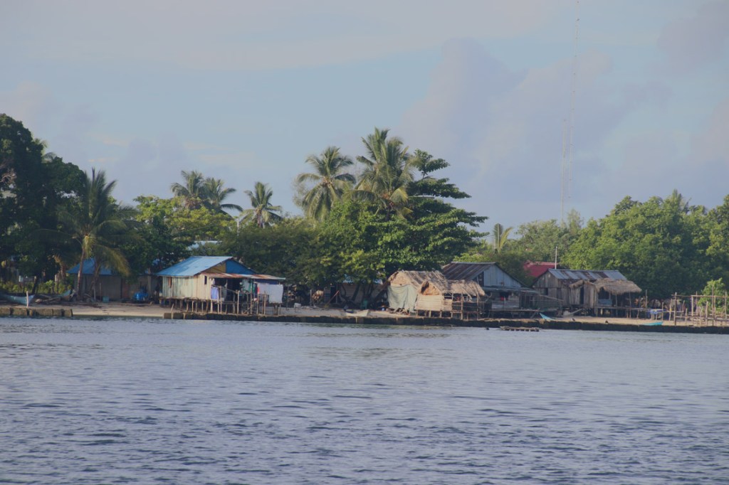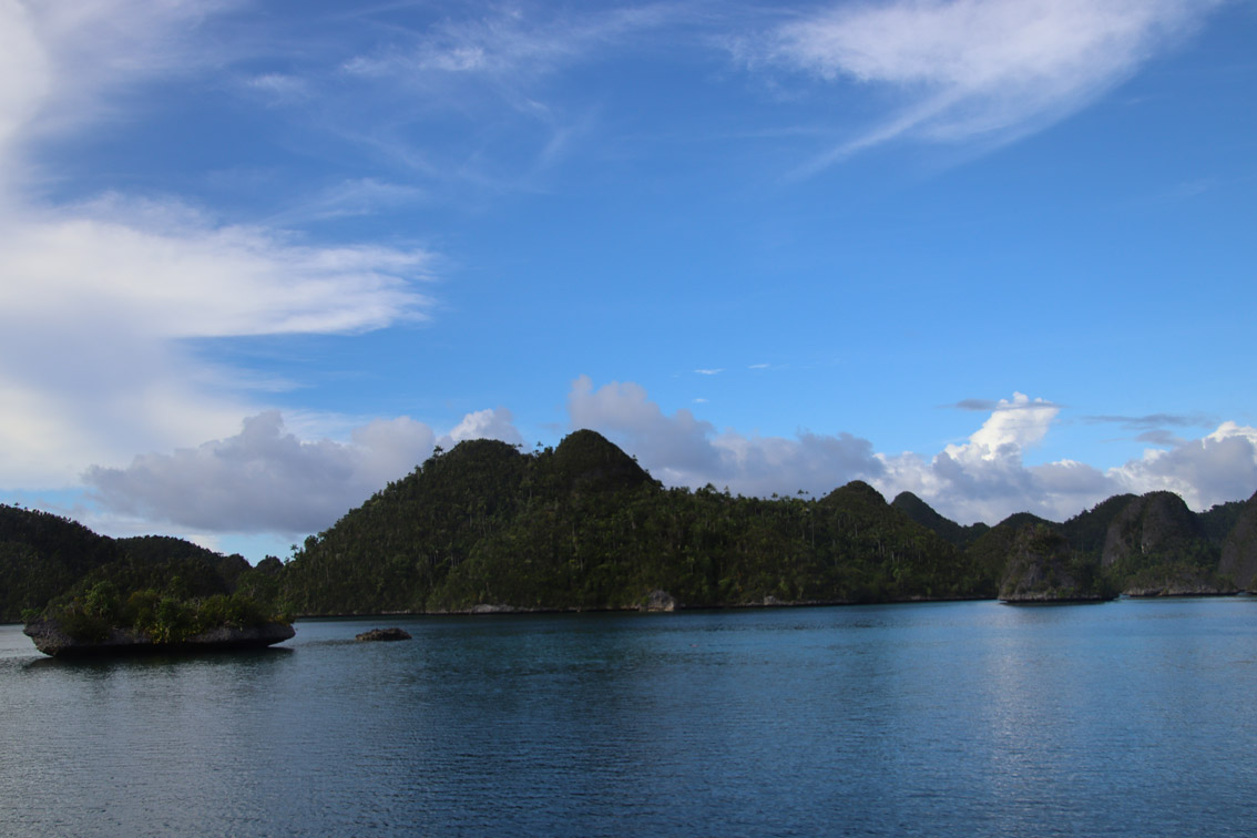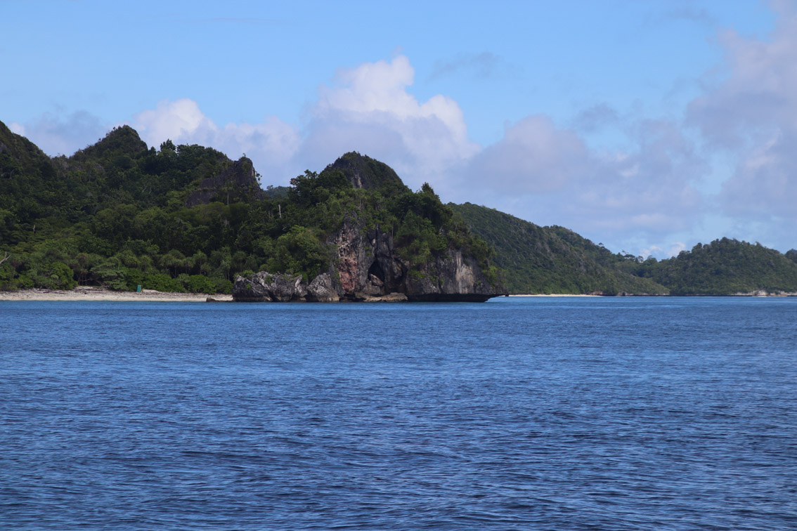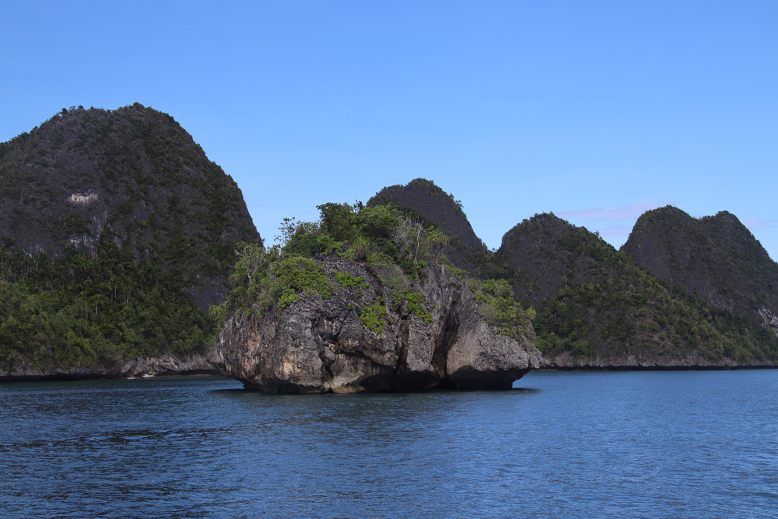 Le vent nous abandonne à mi-parcours et la dernière dizaine de milles se fait au moteur sur une mer parfaitement lisse. Nous jetons notre dévolu sur Mariabio, une petite baie d’aspect tranquille et bien protégée au fond de la grande baie entourant la petite île d’ Ayemi sur la côte est de Batanta. C’est un très joli endroit, super protégé, entouré de forêt vierge avec une vue sur le large. Les habitations les plus proches sont à plus de deux milles, à part les oiseaux (il y en a beaucoup) on entend pas un bruit et cerises sur le gâteau, l’eau est claire sans aucun déchet plastique visible.