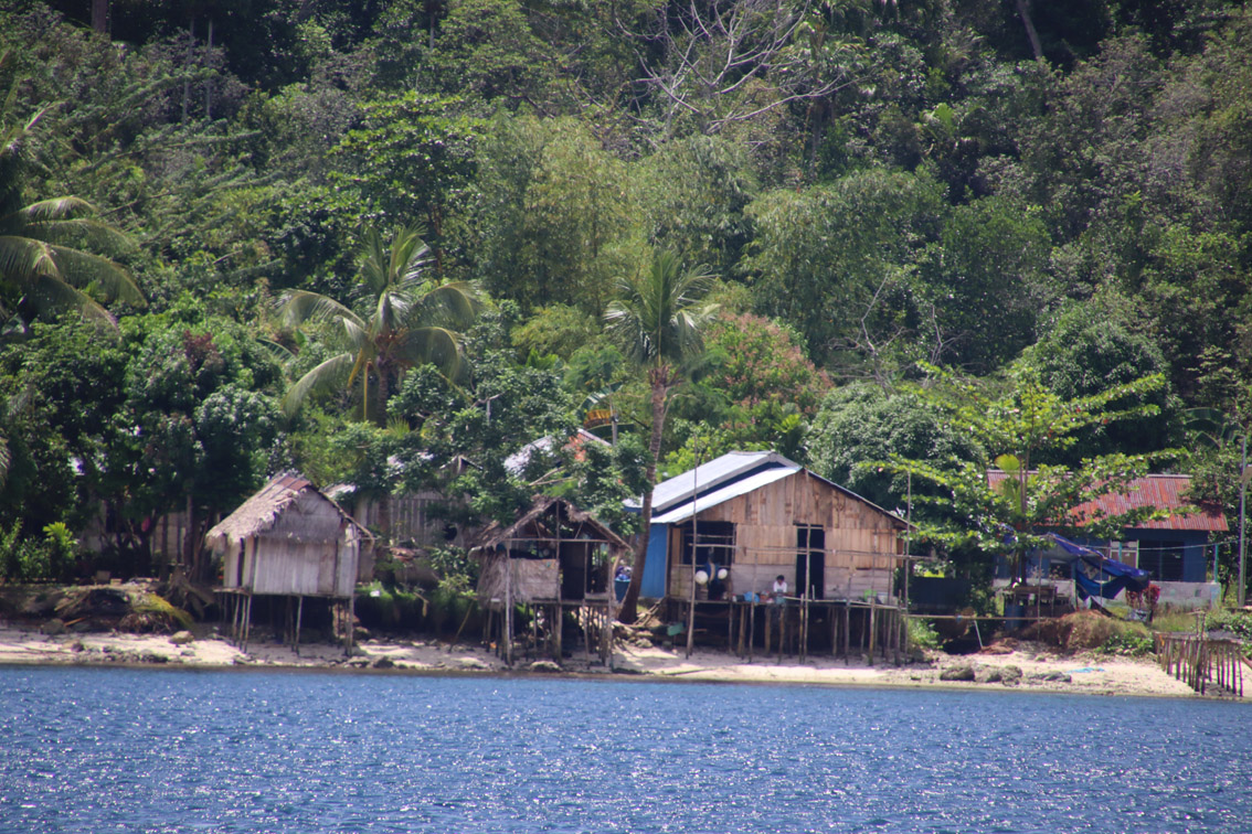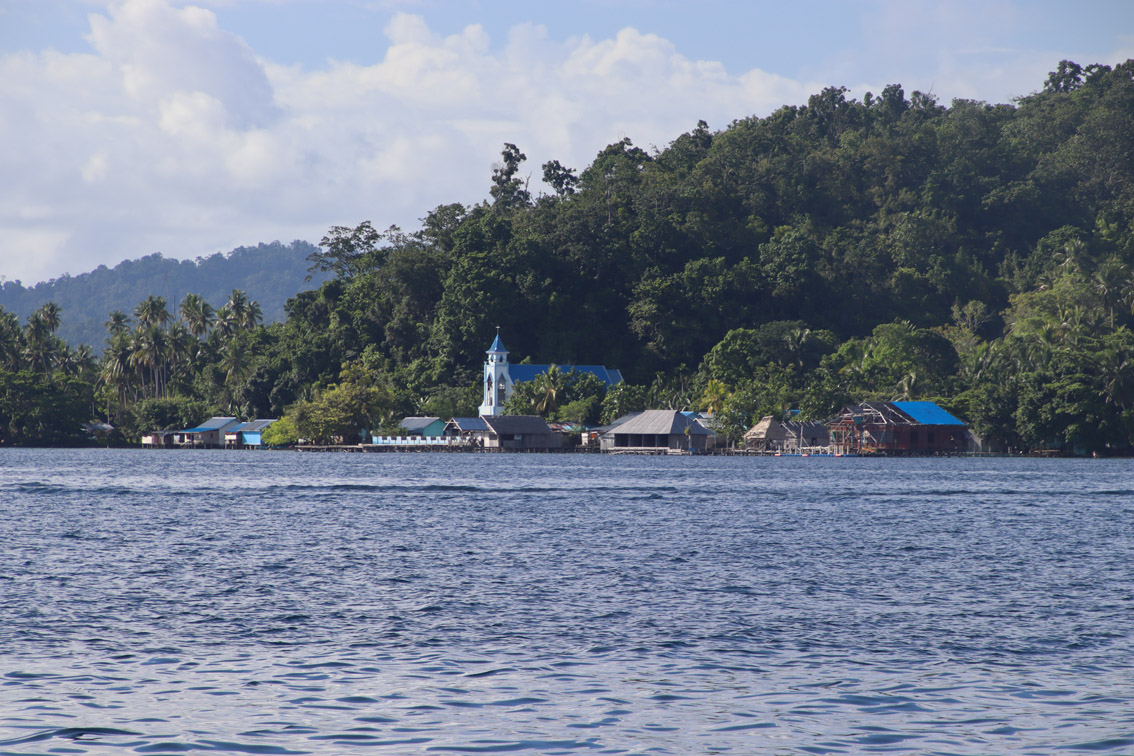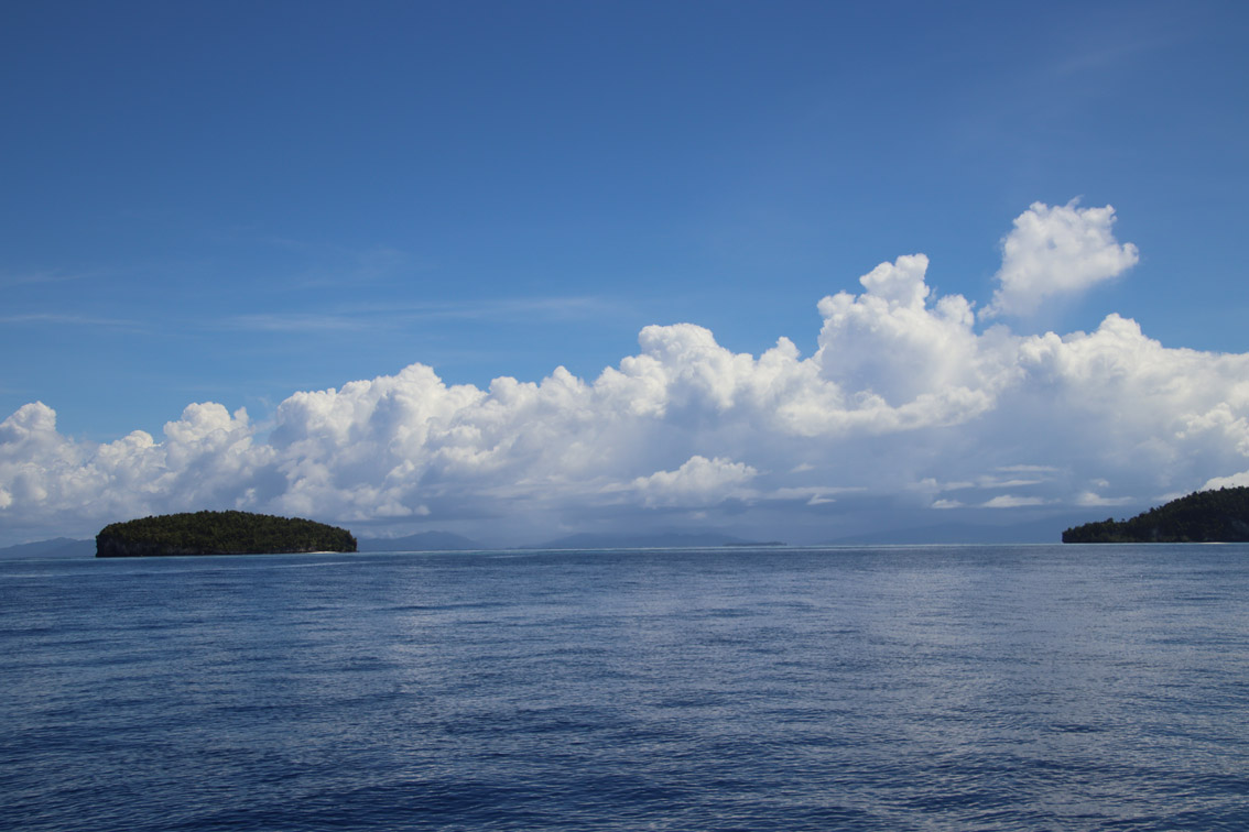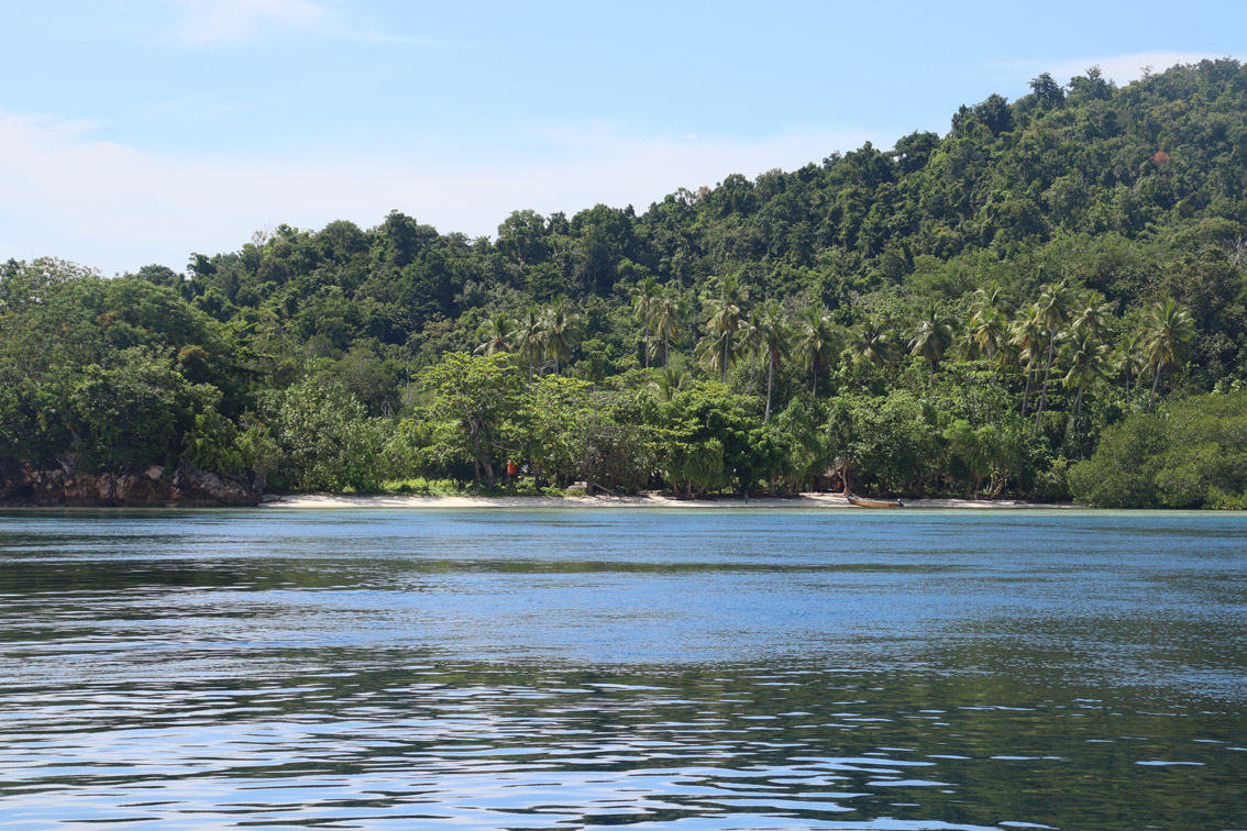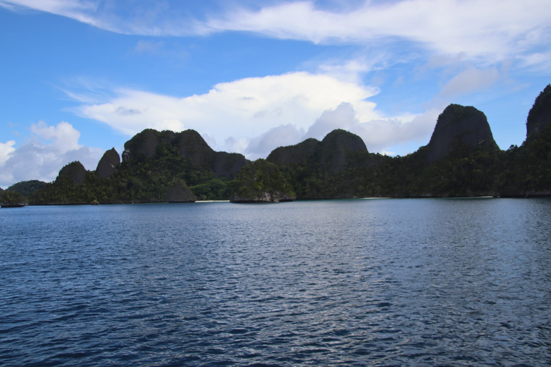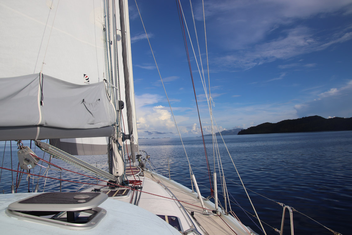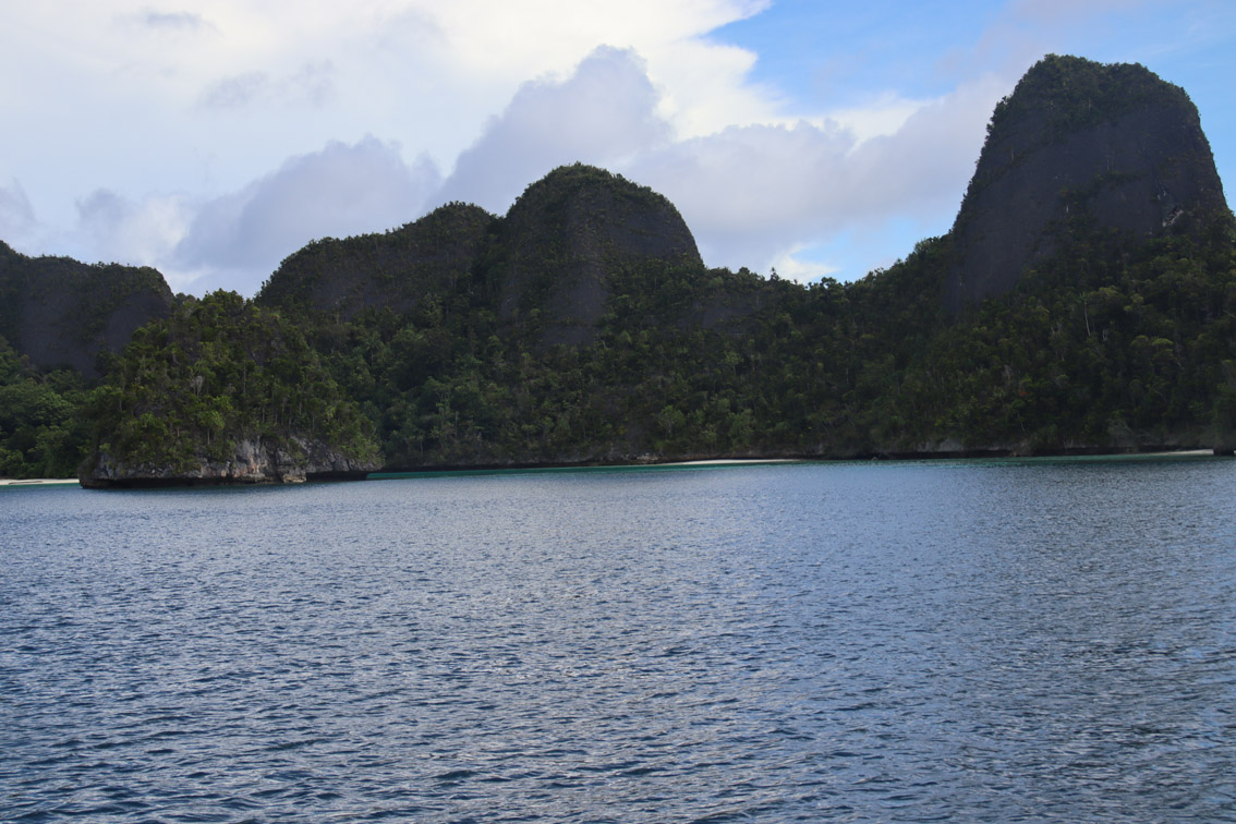 Le vent nous abandonne à mi-parcours et la dernière dizaine de milles se fait au moteur sur une mer parfaitement lisse. Nous jetons notre dévolu sur Mariabio, une petite baie d’aspect tranquille et bien protégée au fond de la grande baie entourant la petite île d’ Ayemi sur la côte est de Batanta. C’est un très joli endroit, super protégé, entouré de forêt vierge avec une vue sur le large. Les habitations les plus proches sont à plus de deux milles, à part les oiseaux (il y en a beaucoup) on entend pas un bruit et cerises sur le gâteau, l’eau est claire sans aucun déchet plastique visible.