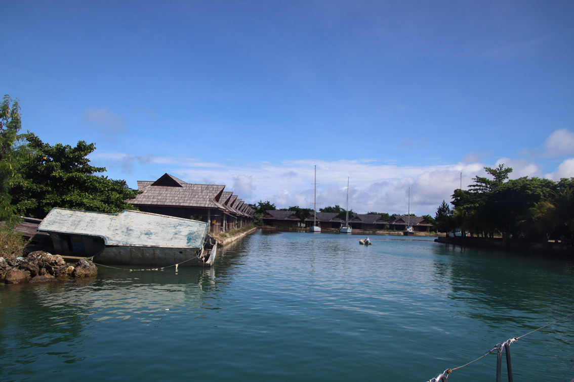 Mardi 16 novembre 2021, les pièces pour le moteur sont commandées, mais elles n’arriverons pas avant au moins 2 semaines. Nous n’allons pas rester attendre tout se temps là dans la fournaise étouffante Tampa Garam et de sa cacophonie de tamtam , d’appel du muezzin, de sermons de l’église pentecôtiste et des karaokés. Nous avons soif de nature et d’eau claire. On s’échappe donc dés que la marée nous permet de sortir de la marina, destination une petite baie tranquille du nord est de Batanta à une vingtaine de milles pour éviter d’avoir trop de route à faire et épargner le moteur et, vous allez voir, nous ne serons pas déçus.