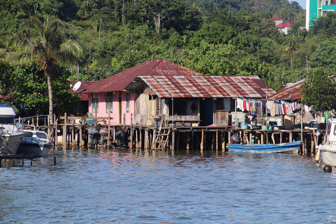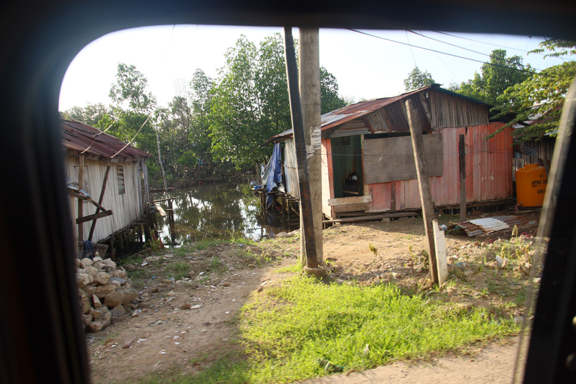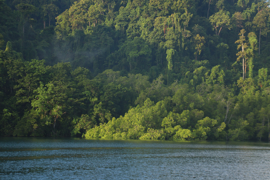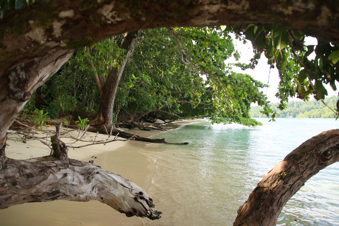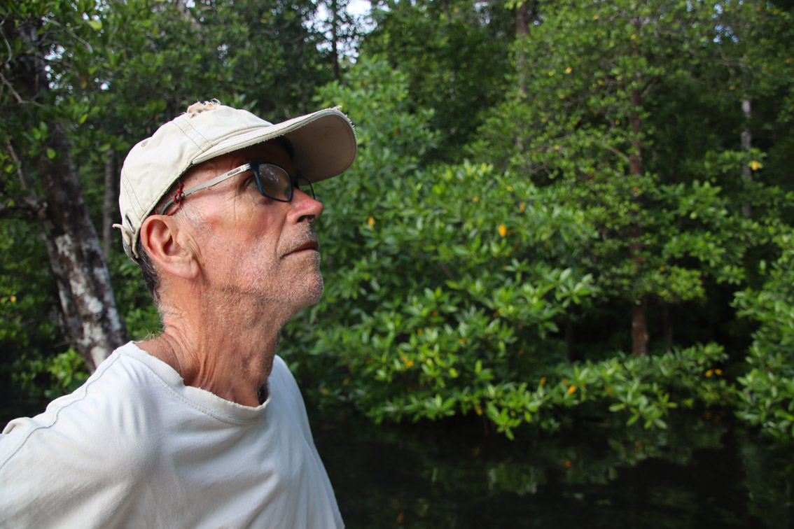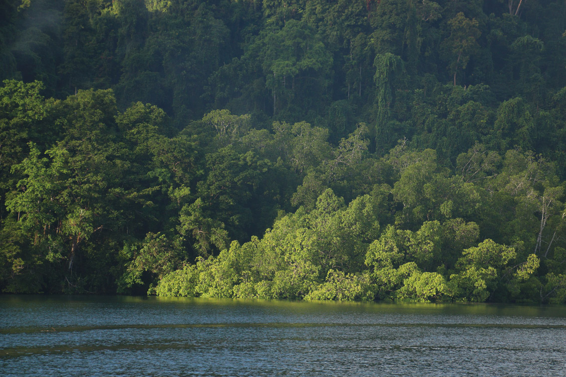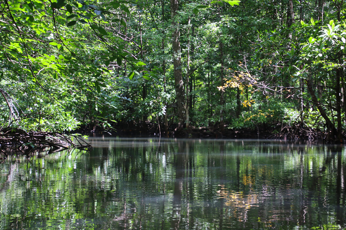 Autre but de promenade en kayak, les magroves qui bordent la baie et surtout la petite rivière qui les traverse et s’enfonce dans la jungle équatoriale. Nous croisons les doigts pour ne pas rencontrer un de ces crocodiles de mer qui sévissent parait-il dans la région et sont réputé pour avoir une bonne taille.