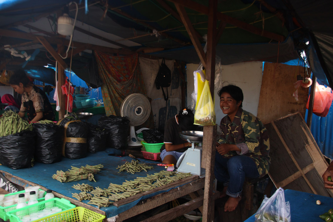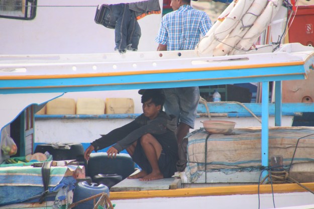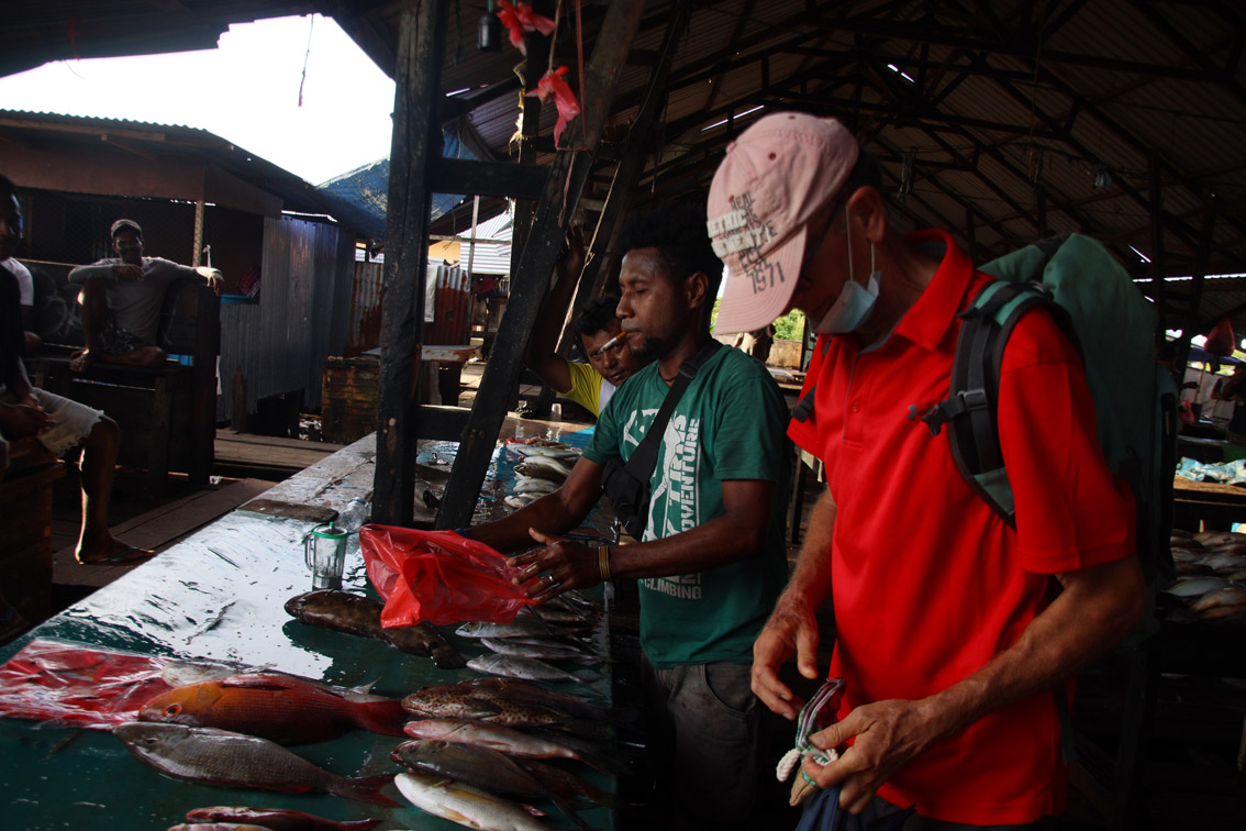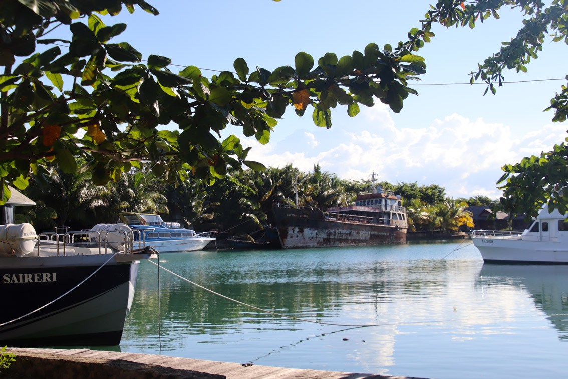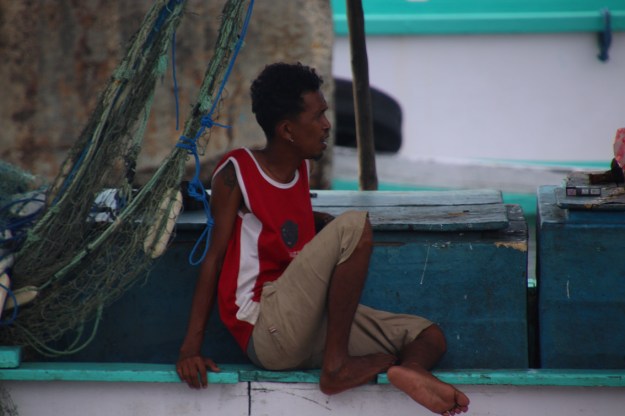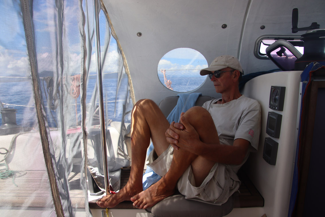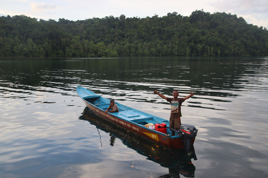 Pendant les douze jours que nous serons là nous ne verrons quasiment pas âme qui vive. Quelques locaux traversent la baie une ou deux fois par semaine pour remonter la petite rivière ou aller travailler sur leur jardin potager (une clairière déboisée de l’autre côté de la baie). Seules 2 pirogues sont venu nous voir: un homme avec son fils et deux jeunes qui voulaient troquer des noix de coco contre des cigarettes ou de la boisson (finalement on leur en a acheté 3) mais la conversation est restée très limité à cause de la barrière de la langue .