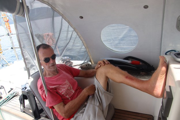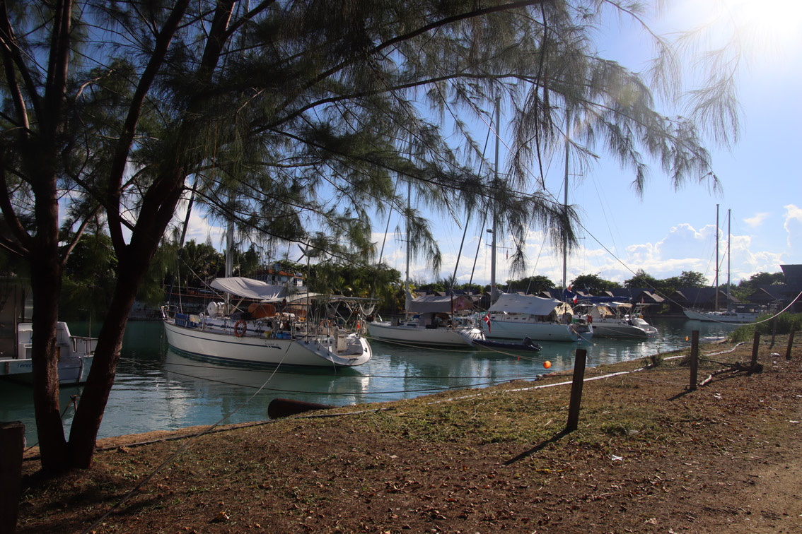 Tous les matins nous pagayons jusquà notre petite plage située juste après la pointe qui ferme la baie. C’est une petite plage de sable blanc qui émerge même à marée haute et qui est bordée à une vingtaine de mètres du rivage par un superbe récif de corail, idéal pour le snorkeling . Nous nageons une bonne heure émerveillés par la multitude des espèces de coraux et de poissons multicolores. Nous y verrons aussi à plusieurs reprises de belles langoustes cachées sous une patate de corail dans à peine deux mètres d’eau. Sous un autre, nous verrons aussi un beau petit requins à pointes blanches en attendant sans doute le soir pour partir à la chasse. Autre particularité de cette plage privative de rêve, une bonne connexion 4G permettant à Domi de communiquer avec le monde et de suivre les commandes (pièces moteur, plaque inox pour réparer le halebas de bôme) et envois DHL (cartes de credits envoyées de France par Michel) . On arrive parfois à accrocher un peu de réseau au bateau en hissant le téléphone tout en haut du mat mais c’est souvent interrompus.