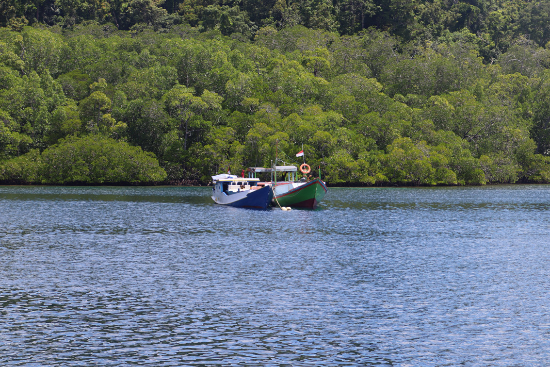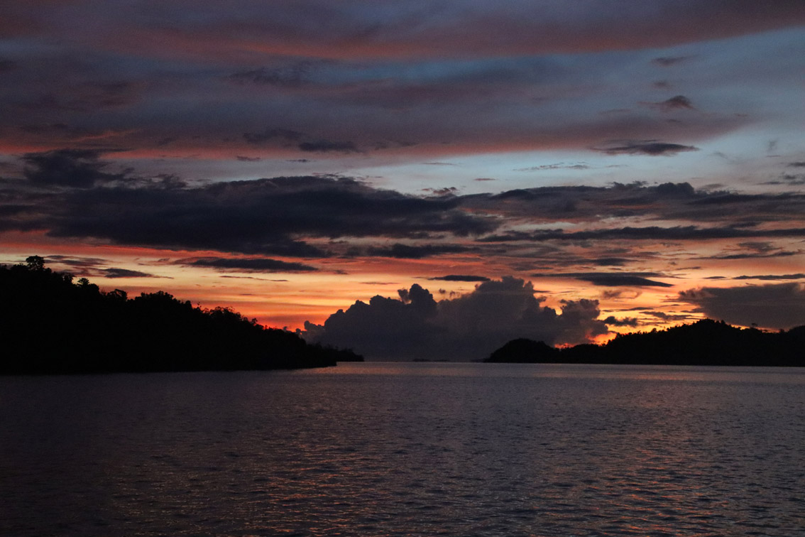 Les mangroves et la forêt entourant la baie de Mairibio sont l’habitat de milliers d’oiseaux et leur chants nous aide à retrouver le calme et la sérénité que la vie trèpidente de Sorong avait un peu ébréchée. Un cadre idéal pour des vacances bien méritées en pleine nature . Du matin au couché du soleil c’est un vrais concert de sifflement, roucoulement, jacassement et autres croassements et la nuits quand la lune apparait entre les nuages (ou réapparait après l’éclipse totale à la quelle nous aurons le privilège d’assister) le concert reprend de plus belle.