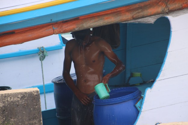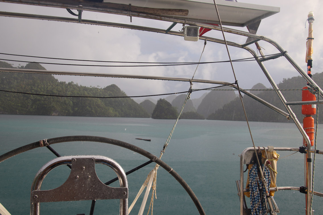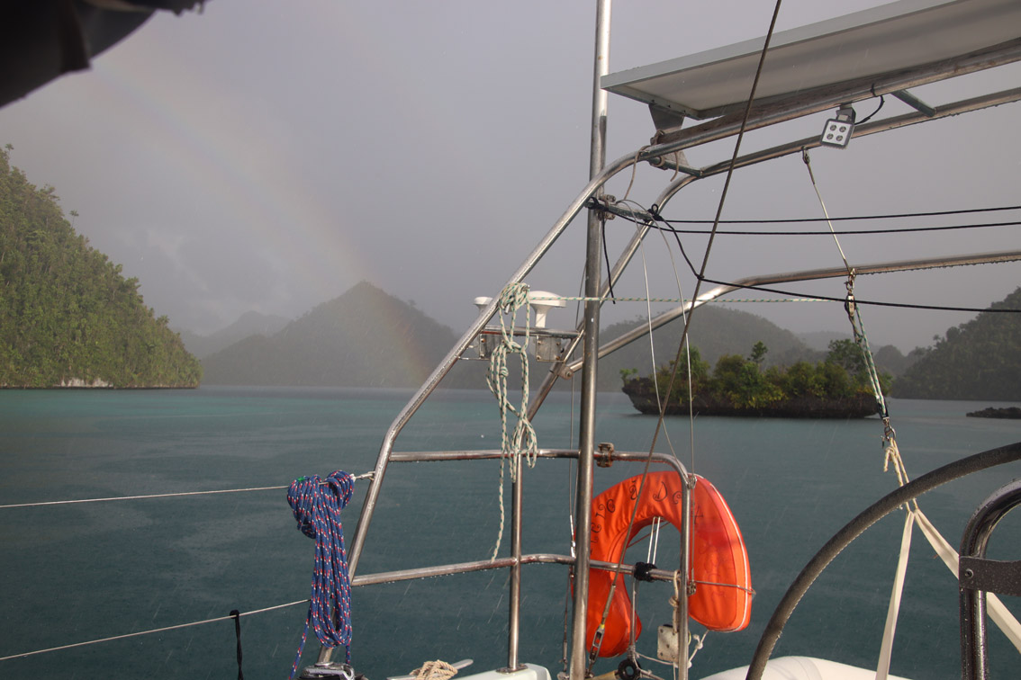 Non pas que l’eau douce soit un problème ici: pratiquement tous les jours un bel orage passe sur la baie et nous fournit généreusement en eau douce. Jeudi nous en avons même récolté 160 litres en une grosse demi-heure: ici pas besoin de dessalinateur. Douches, lessives, ici pas de restriction d’eau. Nous utilisons aussi cette eau tombée du ciel pour boire , elle manque sans doute un peu de minéraux mais elle est très pure et le kéfir n’a pas l’air d’en souffrir en tous cas il est délicieux et pétille comme un grand champagne. Je fais toujours mon kéfir avec une figue sèche mais mon stock renouvelé en Polynésie est épuisé et à Sorong nous n’en avons pas trouvé, par contre grâce à Noor le chauffeur de taxi nous avons trouver des dattes et pour remplacer nos pamplemousses favoris (depuis les Gambier c’est dur d’en trouver) j’utilise des clémentines citronnées locales qui font très bien l’affaire .